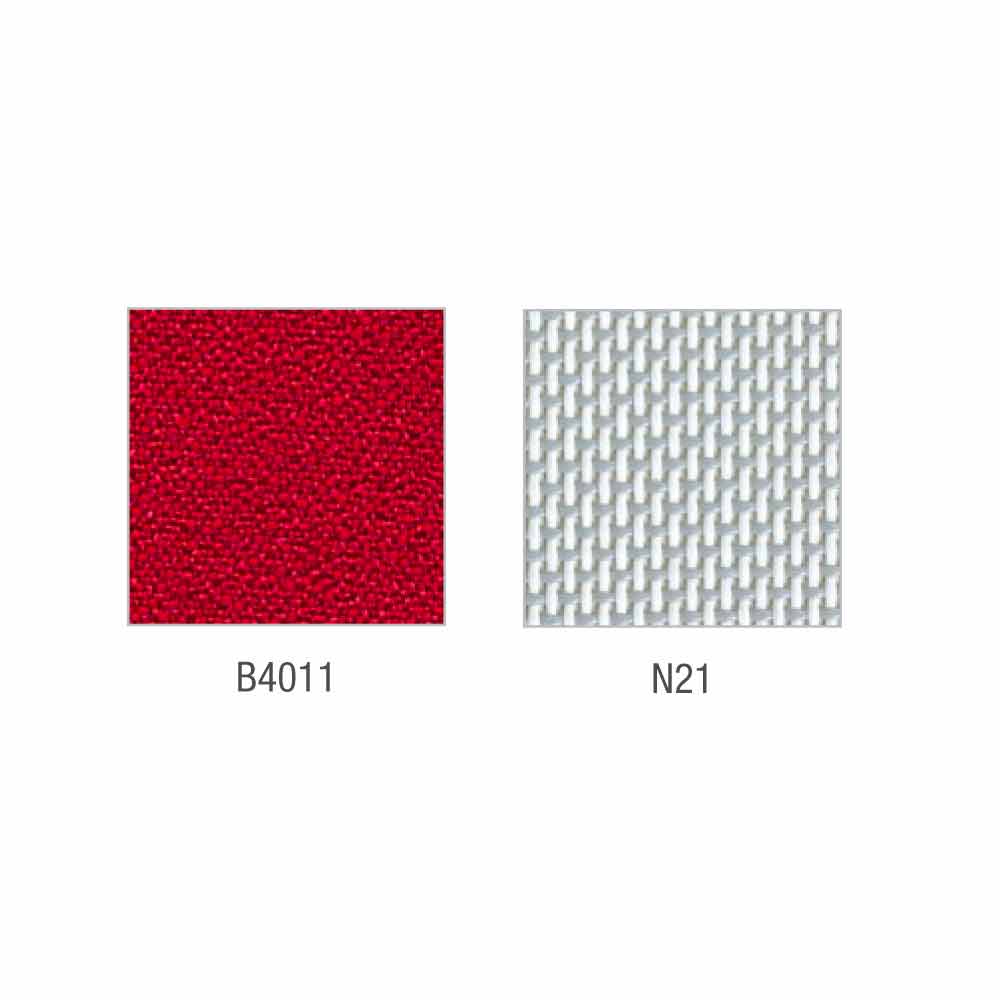 Mina je operační a poloprezidentní křeslo se sedákem z tkaniny a zpět v moderní designové síti; k dispozici v různých barevných kombinacích mezi sedadlem a zadním sedadlem.