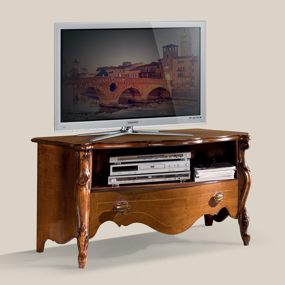TV stolek Bassano se zásuvkou z ořechového dřeva, vyrobeno v Itálii.