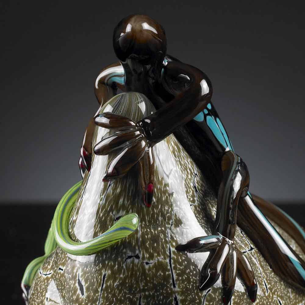 Socha ve tvaru ještěrek na kameni v barevném skle vyrobené v Itálii, luxusní.