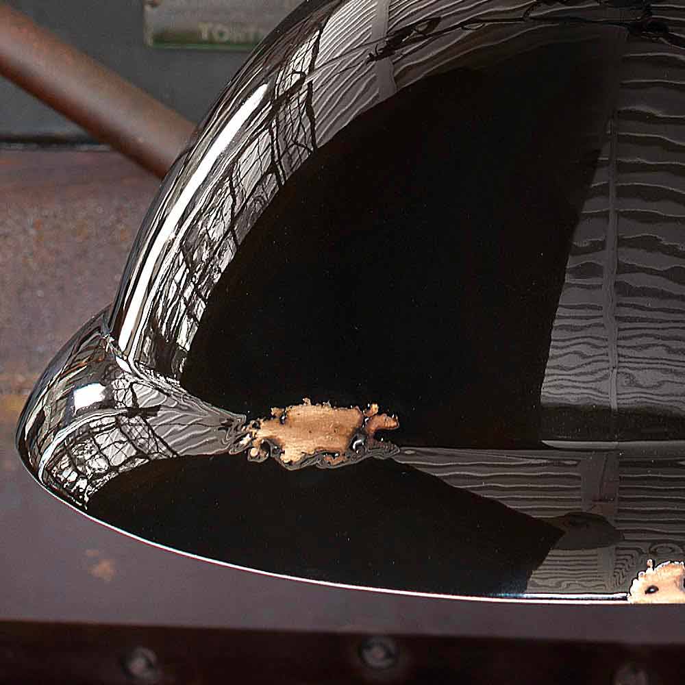 Zvláštnost této lampy spočívá v řemeslném zpracování keramického difuzéru. Keramika je ve skutečnosti zdobena tak, jako by její cestu označil čas. Reprodukce eroze času v kombinaci s lesklými povrchy dává tomuto zavěšení zvláštní hodnotu. Tento časem opotřebovaný efekt dává Angele sofistikovaný vintage-industriální styl. Kovová konstrukce ještě více umocňuje starožitný efekt.