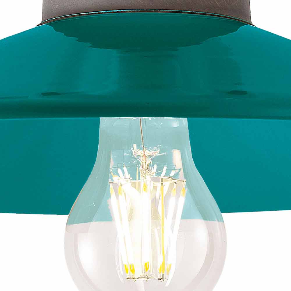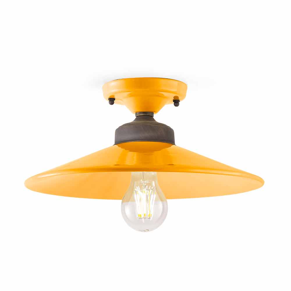 Toto krásné stropní svítidlo se skládá ze staré mosazné konstrukce s difuzorem z lesklé barevné keramiky, dostupné v různých barvách.