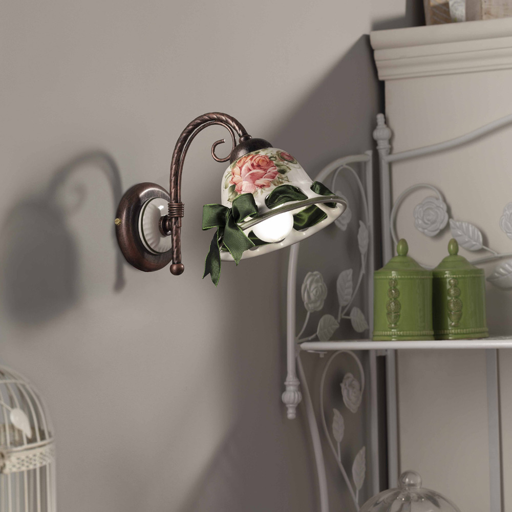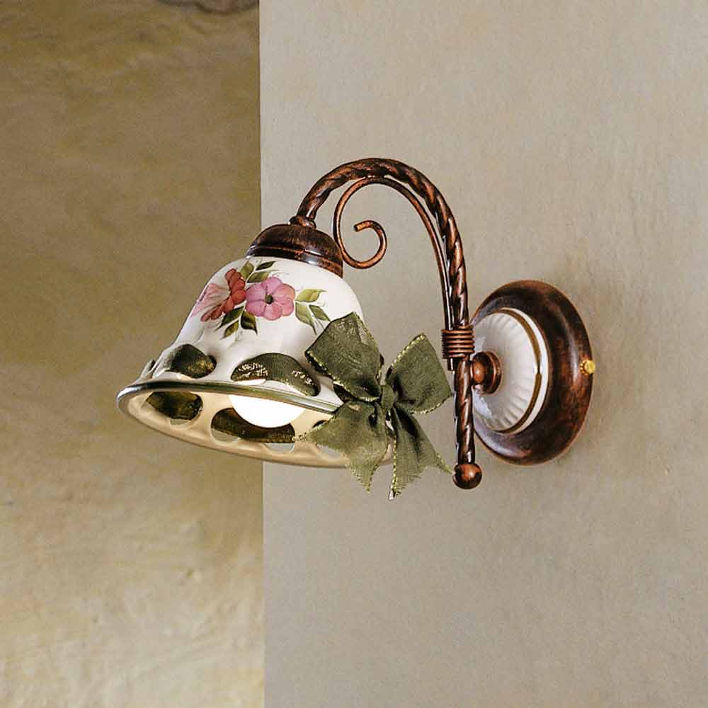 Rustikální dekorovaná keramická nástěnná lampa od Ferroluce Napoli