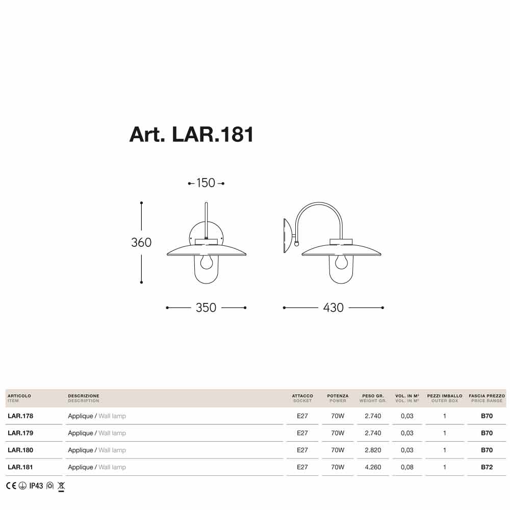 Wall Nabucco, měď a mosaz antiqued, sklo