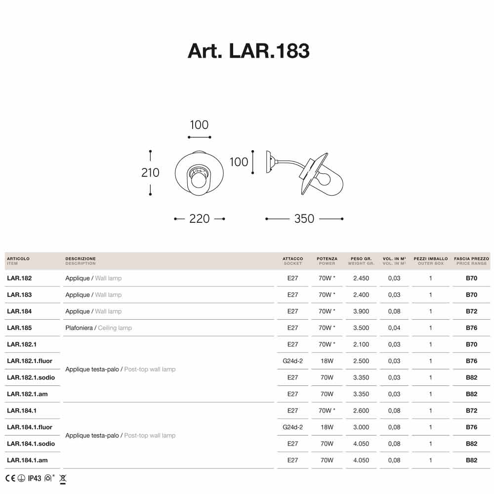 Nastavitelné nástěnné svítidlo v železa Loft Il Fanale