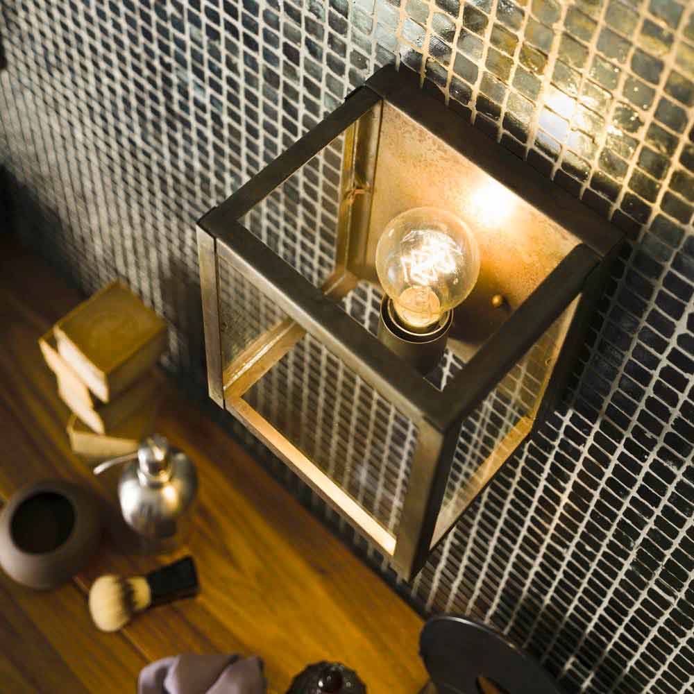 Průmyslová lampa z mosazi a skleněnou deskou Světlo