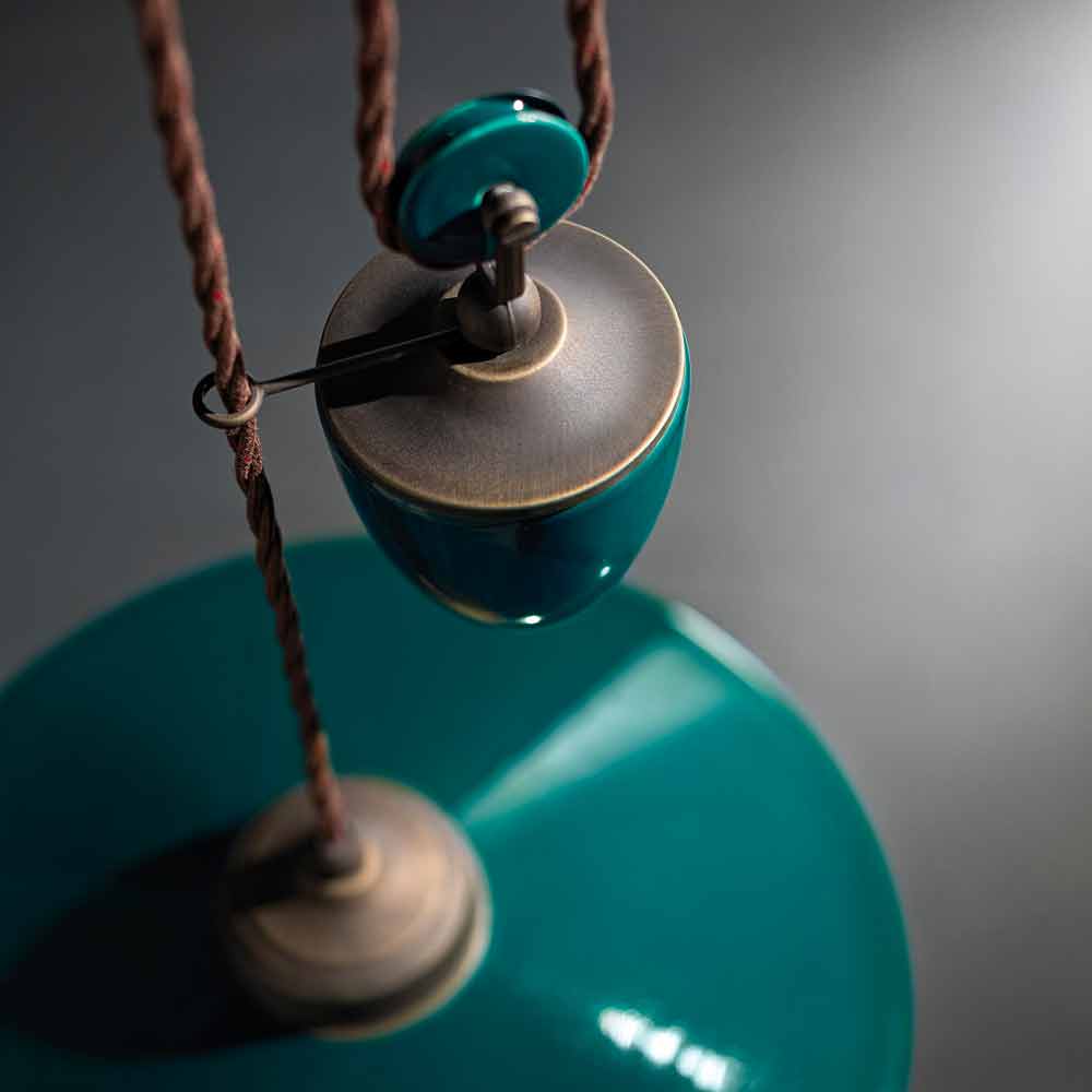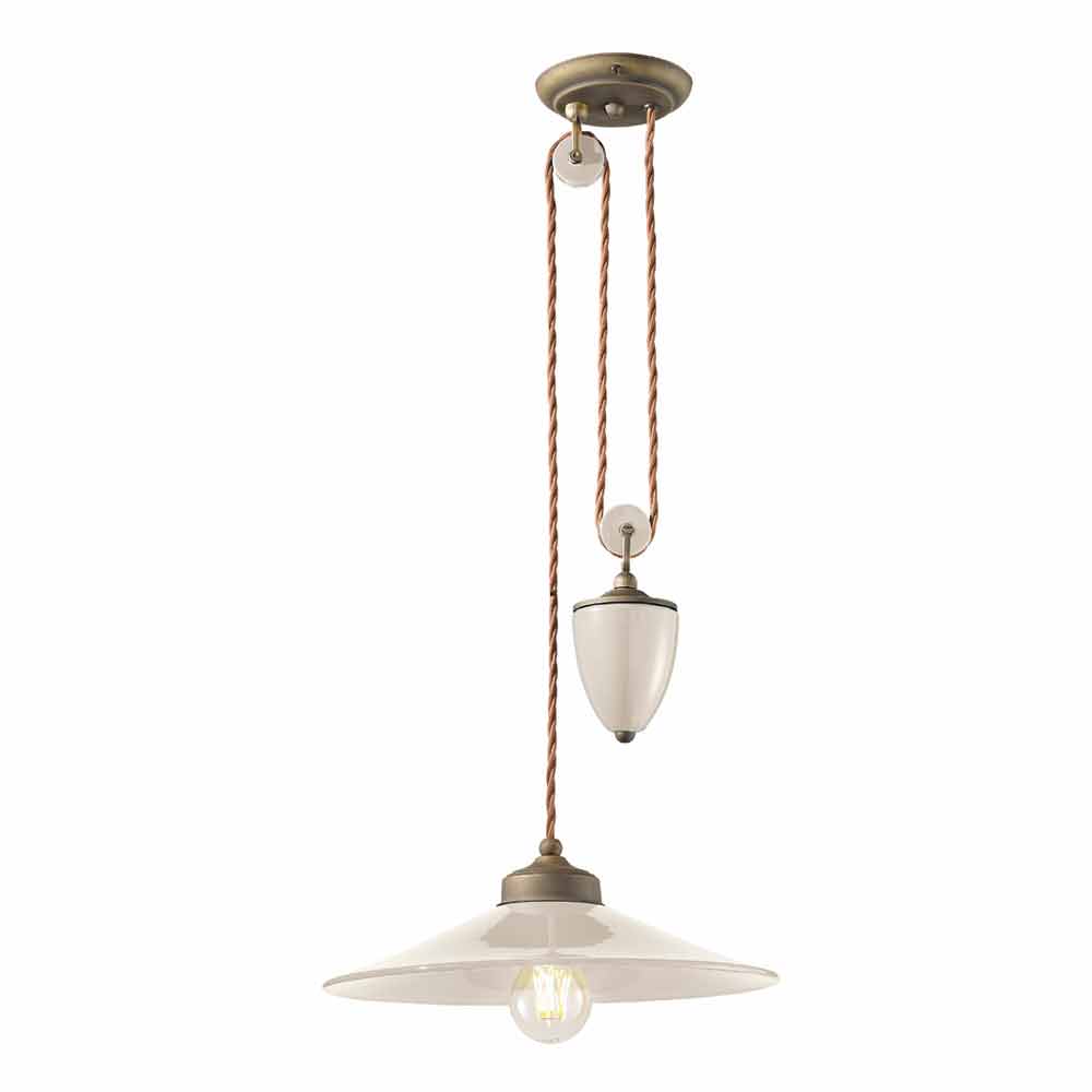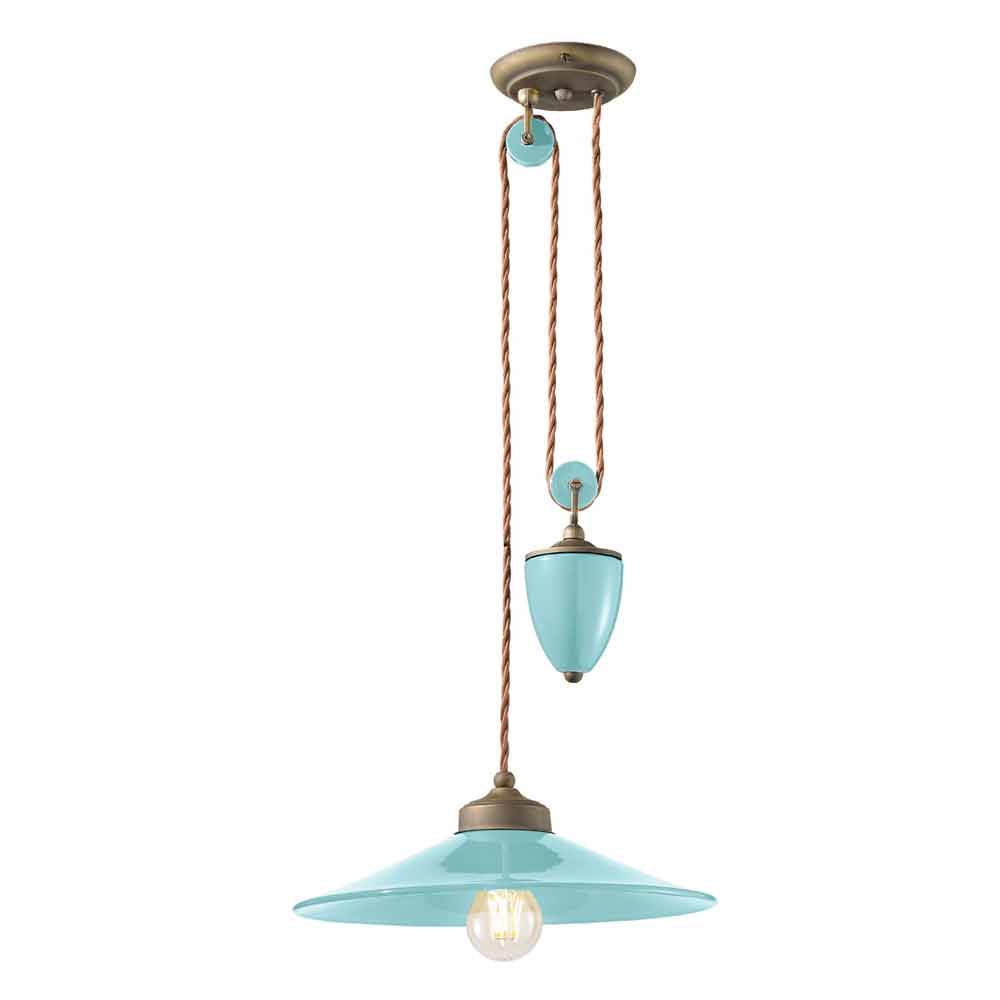 Toto krásné zavěšení se skládá ze starožitné mosazné konstrukce s difuzorem z lesklé barevné keramiky, dostupné v různých barvách.