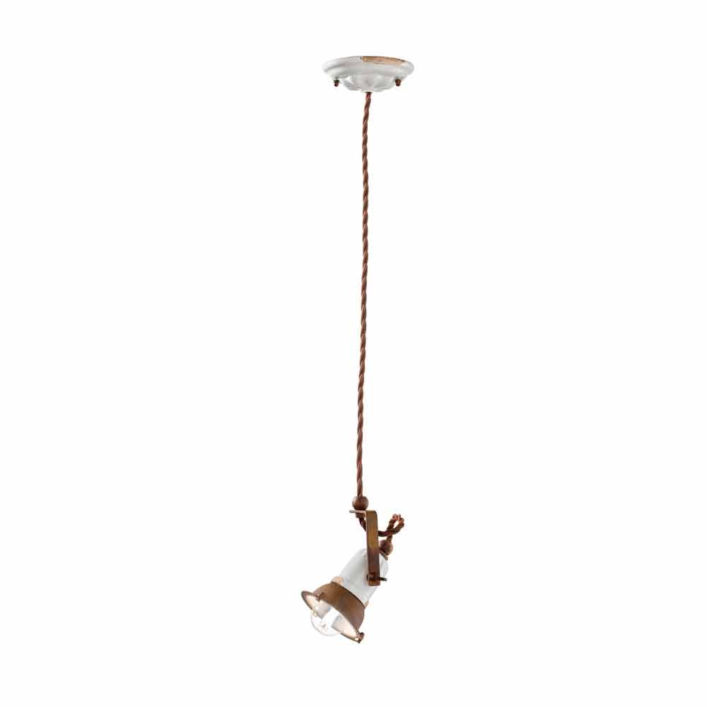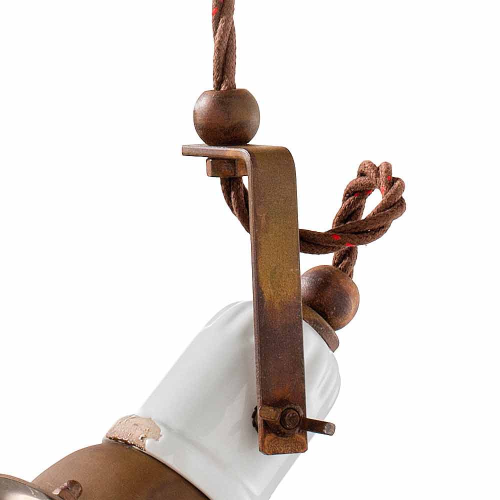 Směrové světlo, keramika s vintage povrchovou úpravou v dokonalé harmonii s oxidovaným kovem: závěs, který je jedinečný svým stylem, se starožitnou příchutí, ideální pro nejušlechtilejší prostředí.