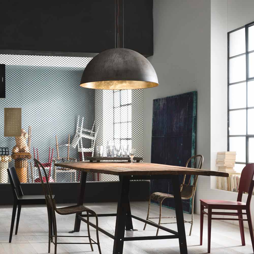 Graf tučné tahy a perfektní poloviny koule charakterizují tuto kolekci svítidel, která je navržena jako pocta astronomické revoluci. Kontrast mezi vnější mosazi nebo železa a vnitřkem z plátkového zlata, stříbra nebo mědi list, dává tento produkt estetickou hodnotu velký vizuální efekt. K dispozici s vnějším mosazi nebo železa 30,40,60 cm v průměru a s vnějším železa 80 cm v průměru.