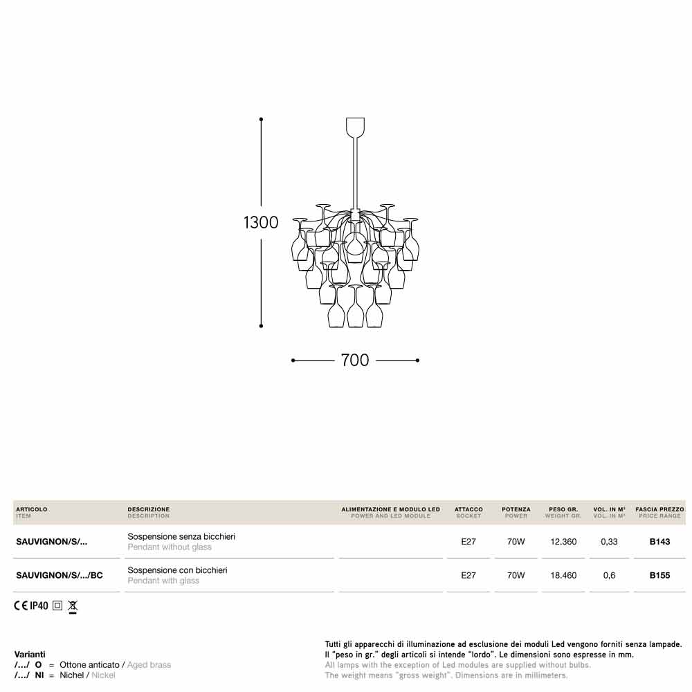 Pendant lamp 30 sklenic převrátil Sauvignon