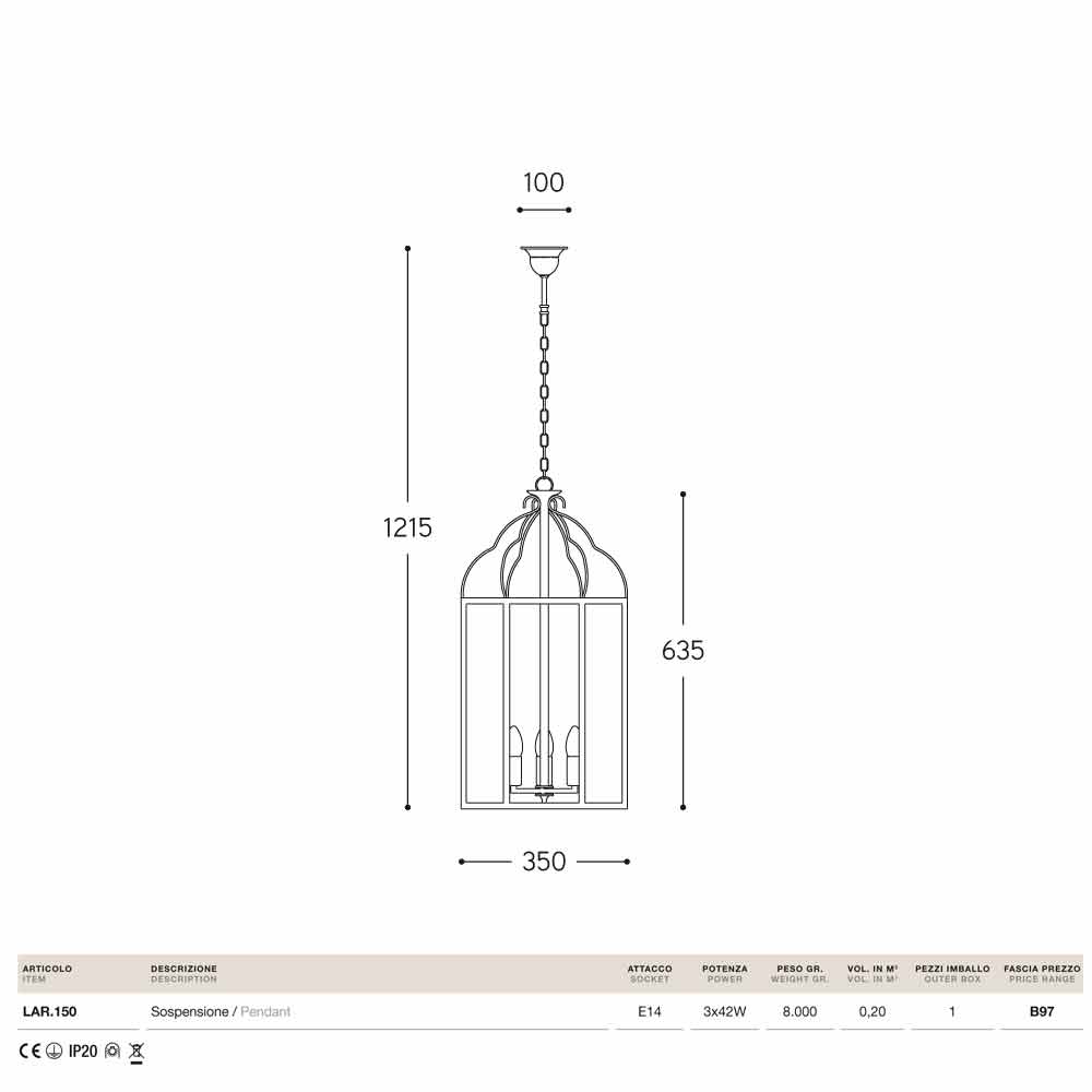 Lampa konstrukce zavěšení na starožitný železa Jean Il Fanale