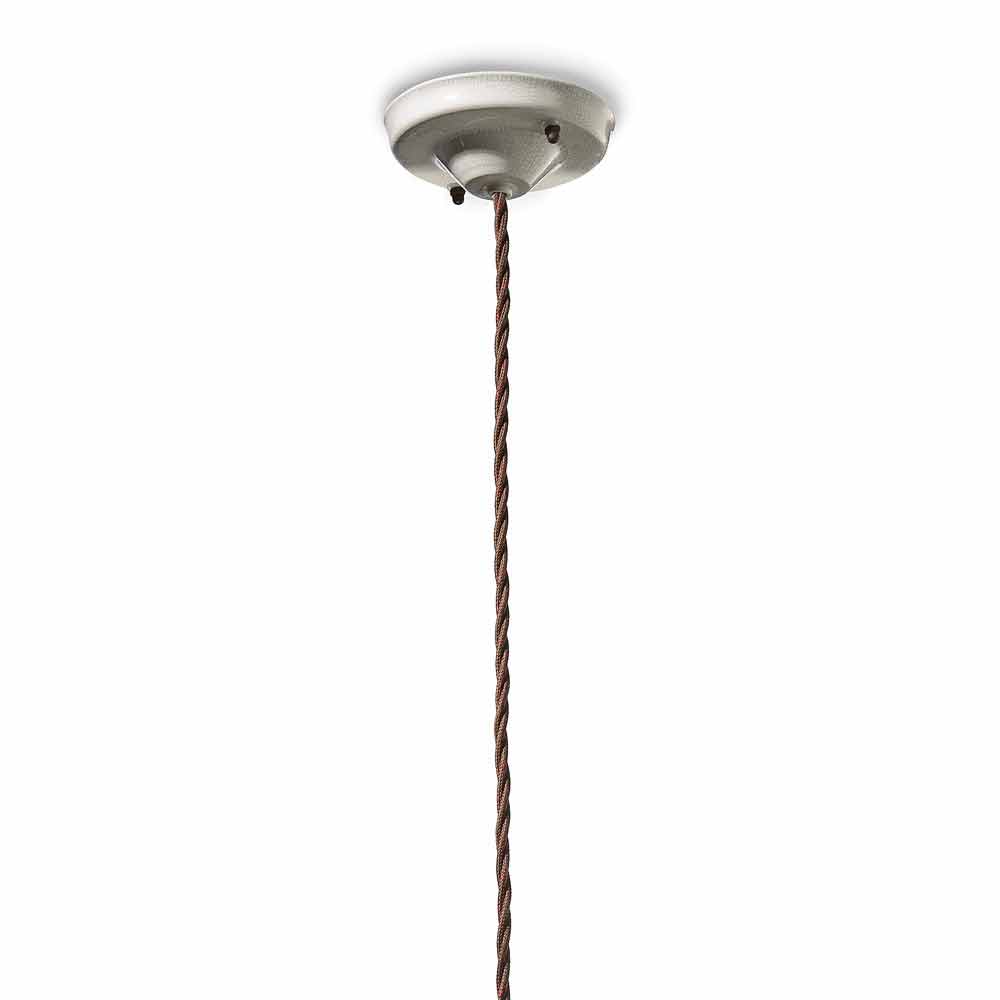 Toto krásné zavěšení je tvořeno kovovou korunkou v matné rzi, podporované opleteným kabelem, který dotváří jeho industriální styl, zatímco keramické části, které jej tvoří, jsou zpracovány s craquelé detaily, aby byla dokončena rovnováha plného a prázdného . Právě tyto materiály dávají Janice roli připomínat minulost.