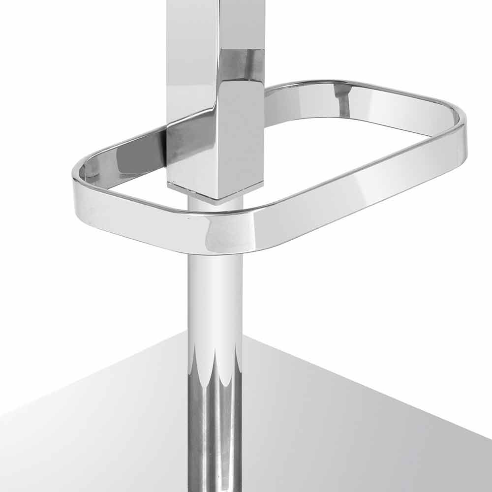 - čtvercová základna v chromovém provedení a sedák čalouněný v elegantní šedé kožence (materiál IGNIFUGO CLASS 1 IM, odolný proti otěru a opotřebení)