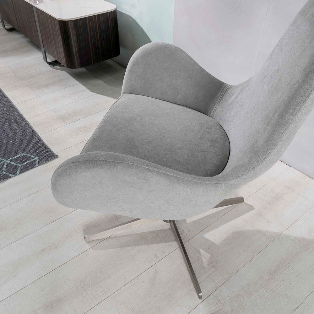 Prostor pro stylový odpočinek. Toto otočné křeslo má evokující siluetu, která snadno komunikuje s moderním a současným nábytkem. Jeho design přináší kouzlo, které nikdy nevybledne, nadčasový měkký a klikatý tvar. Překvapivé pohodlí zaručuje polstrovaný látkový sedák.