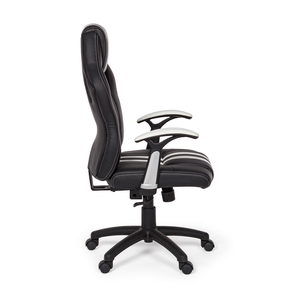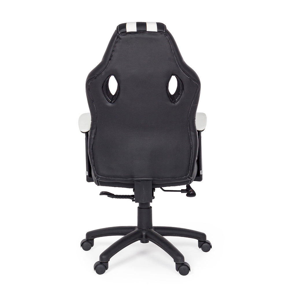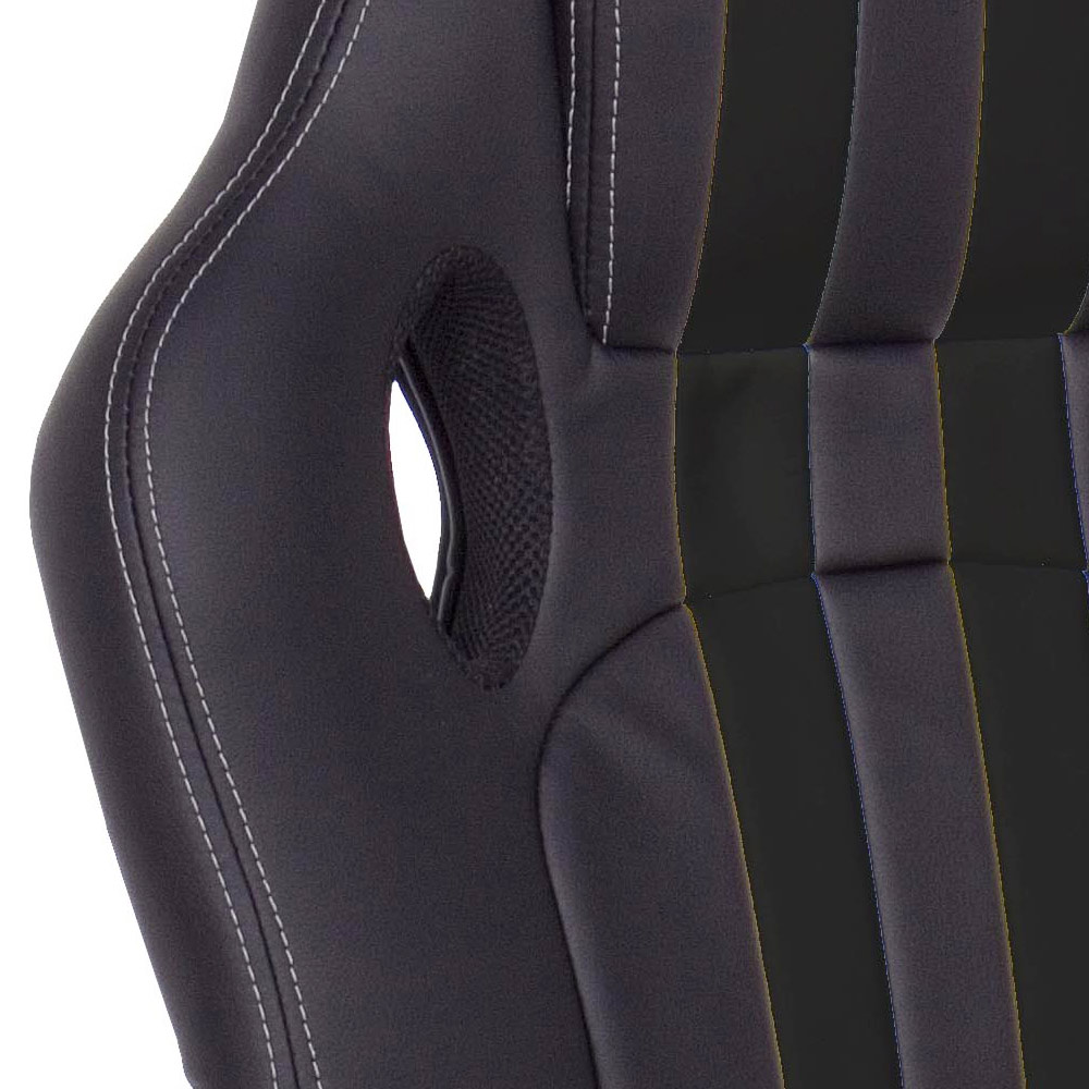 Otočné a polohovací kancelářské křeslo z nylonu a černé ekokůže s barevnými detaily.