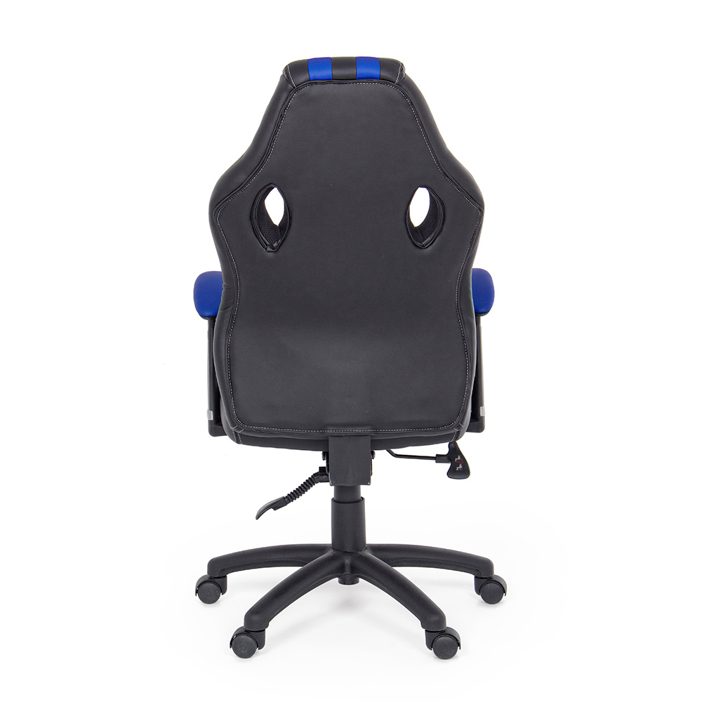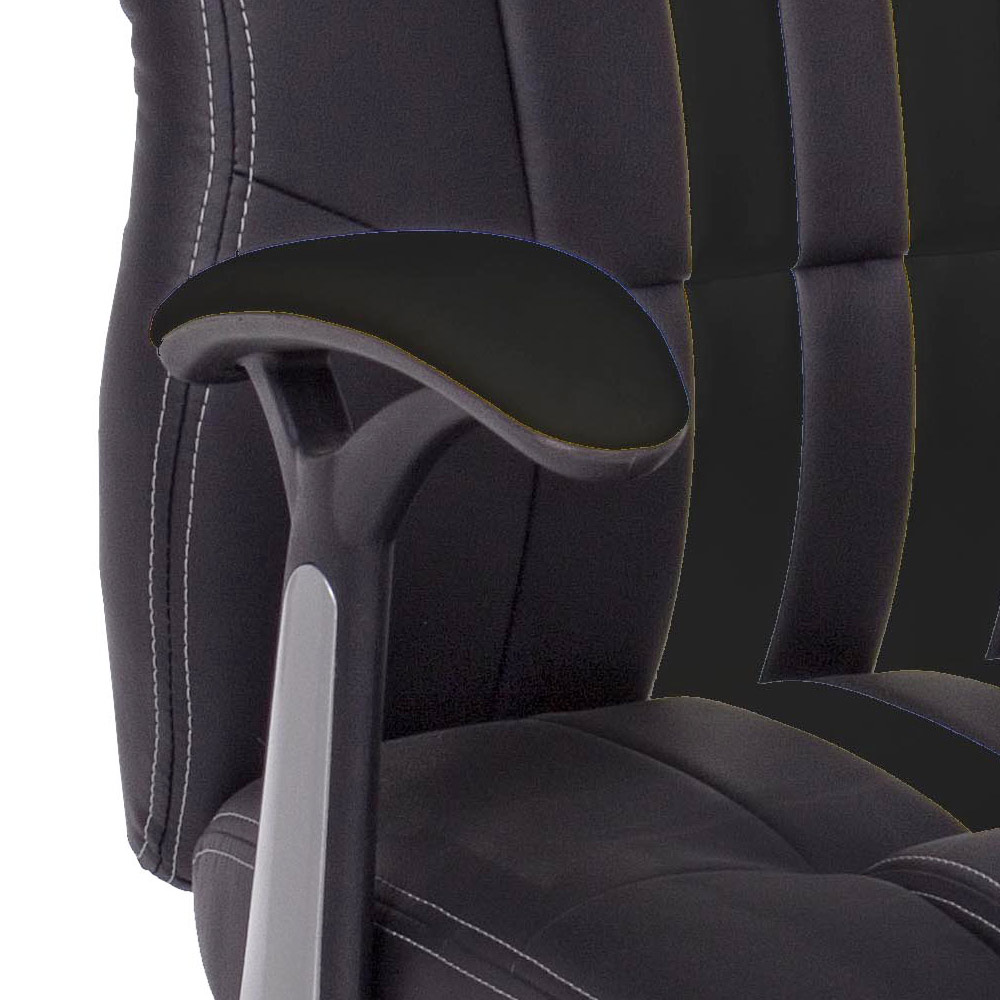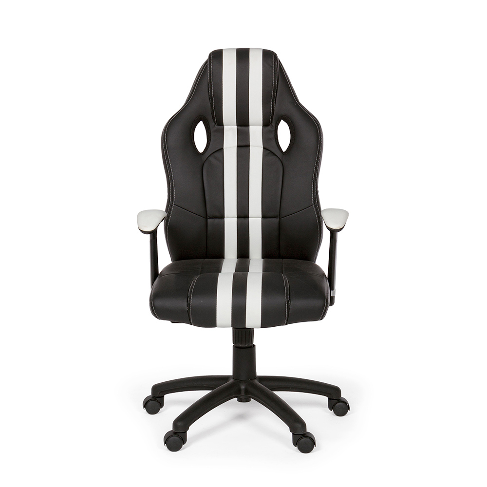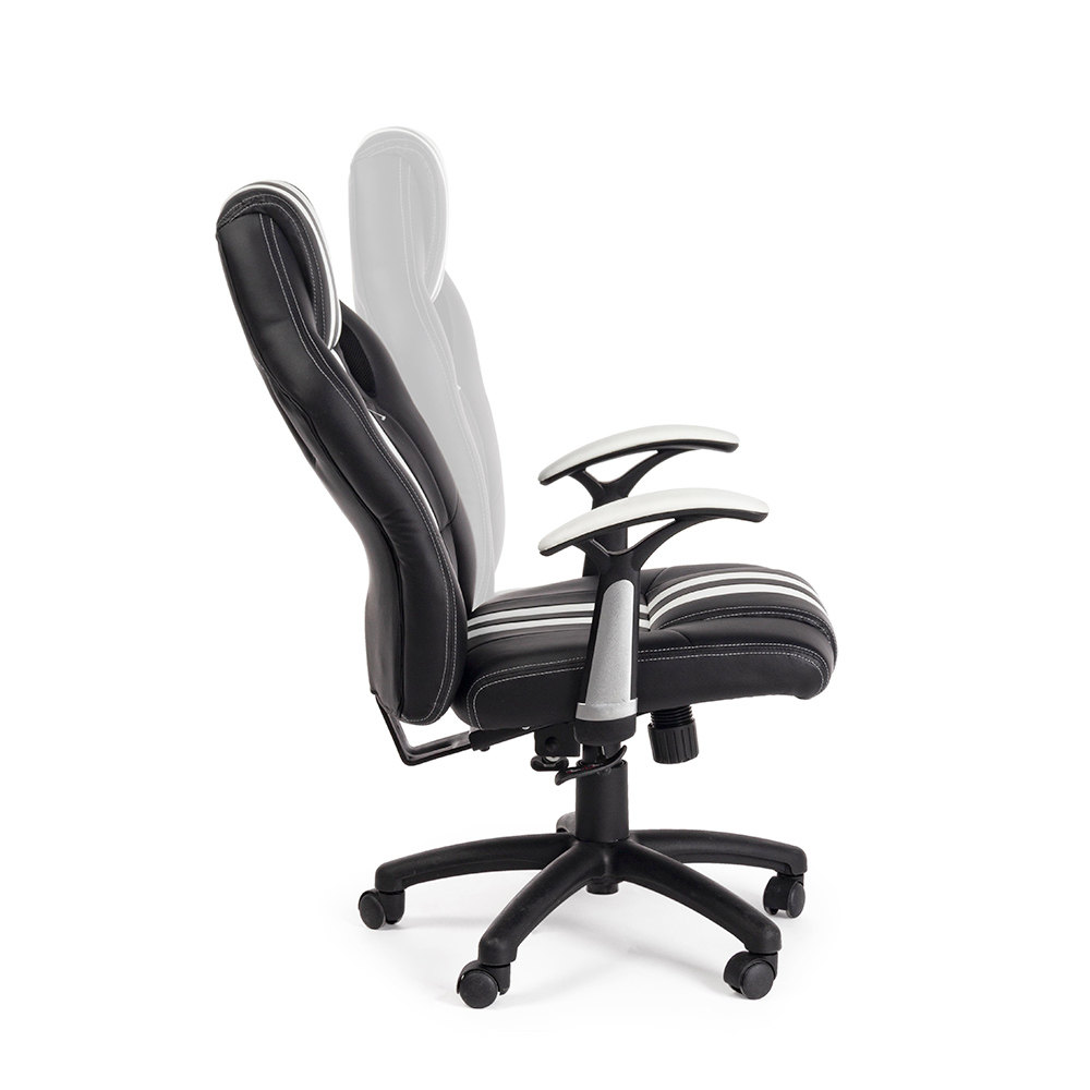 Otočné a polohovací kancelářské křeslo z nylonu a černé ekokůže s barevnými detaily.