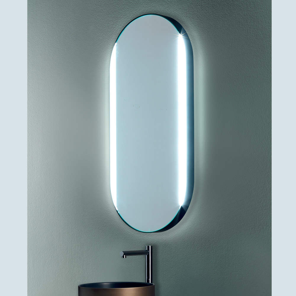 LED světla umístěná podél okraje vytvářejí auru měkkého světla, které dodává nejen vizuální rozměr, ale také praktickou funkci, takže je ideální pro úkoly, které vyžadují optimální osvětlení , jako je nanášení make-upu nebo holení. Tento dotek jasu promění každý odraz v zážitek luxusu a pohodlí .