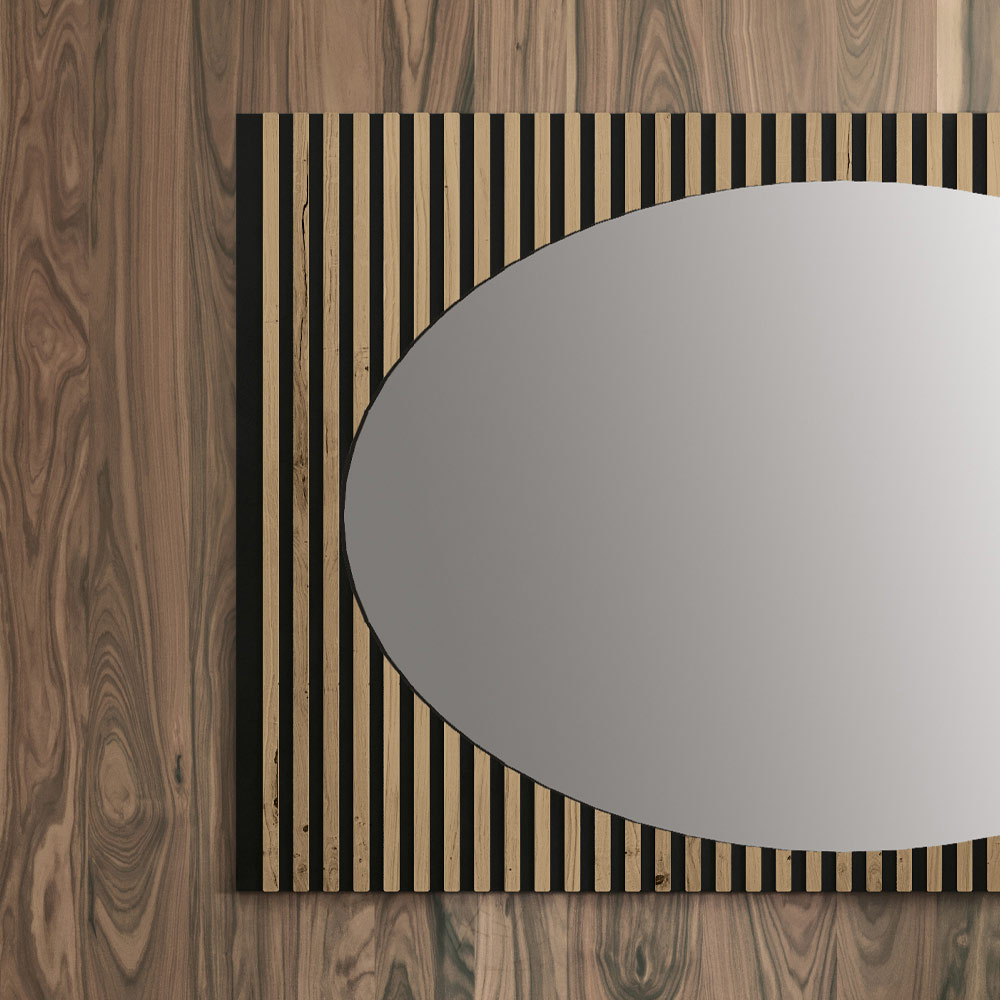 V tomto nástěnném zrcadle vyrobeném v Itálii z vysoce kvalitních materiálů se snoubí praktičnost a estetika . Panel je vyroben z dubového žebrovaného MDF s povrchovou úpravou severský vázaný dub a dřevěné uhlí .