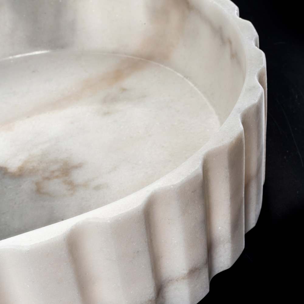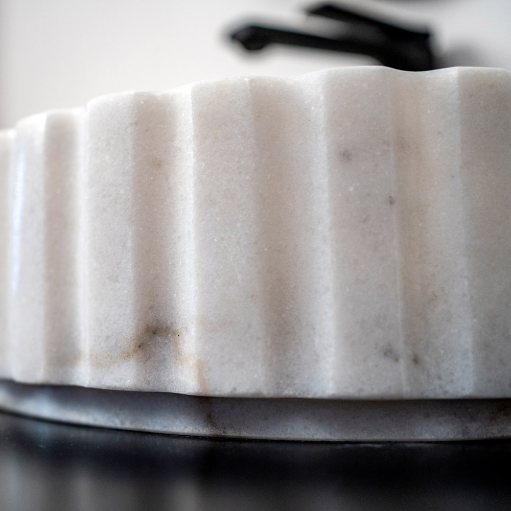 Toto umyvadlo na desku je skutečným uměleckým dílem, vyřezávaným z jednoho bloku vybraného mramoru , oslavující přirozenou krásu kamene s jeho jedinečným žilkováním a barevnými nuancemi. Jeho vnější tvar se vyznačuje měkkými liniemi a jemně zpracovanými detaily, které vytvářejí elegantní a moderní profil. Každý kus je jedinečný , takže nikdo jiný nebude vlastnit stejný dřez. Dodává se s mramorovým klikacím odpadem , který posiluje luxusní estetiku a zajišťuje soudržný design. Je to ideální volba pro ty, kteří hledají dotek třídy a jedinečnosti ve své koupelně.