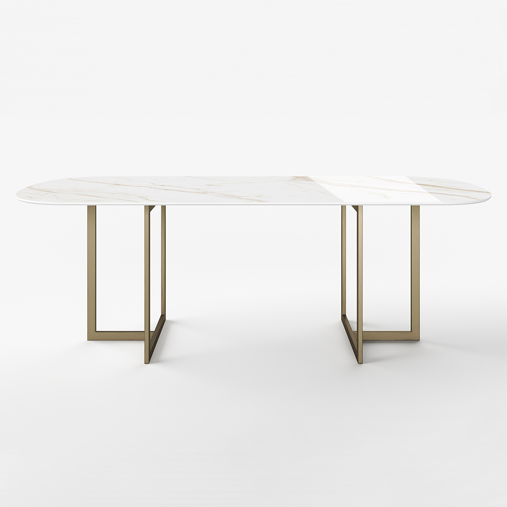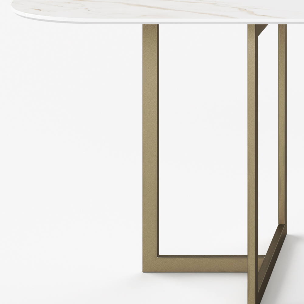 Jídelní stůl z porcelánové kameniny s mramorovým a kovovým efektem Made in Italy.