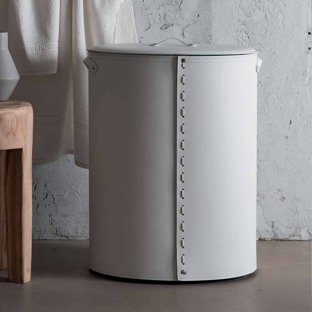 Oválný koš na prádlo v regenerované kůži Riky vyrobené v Itálii