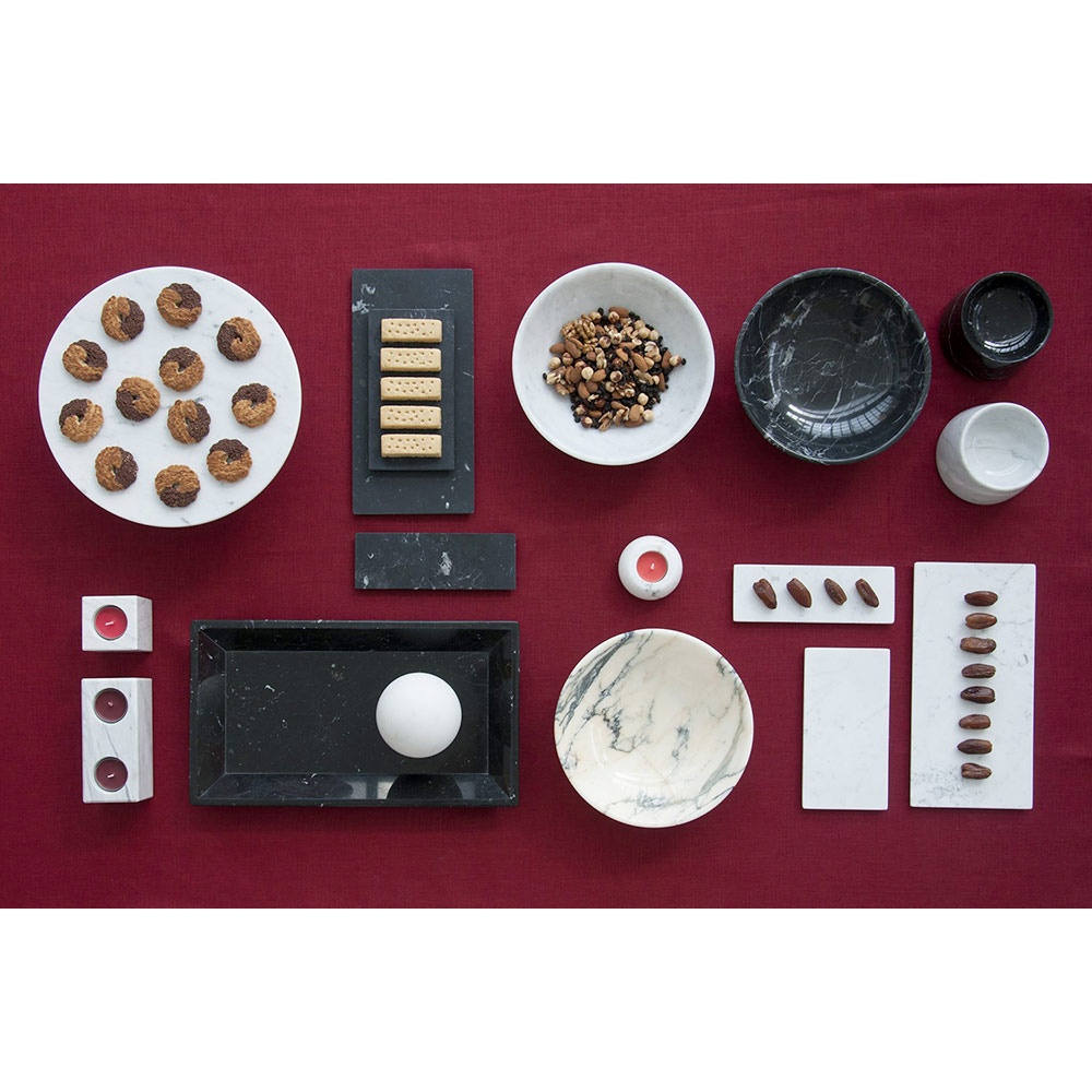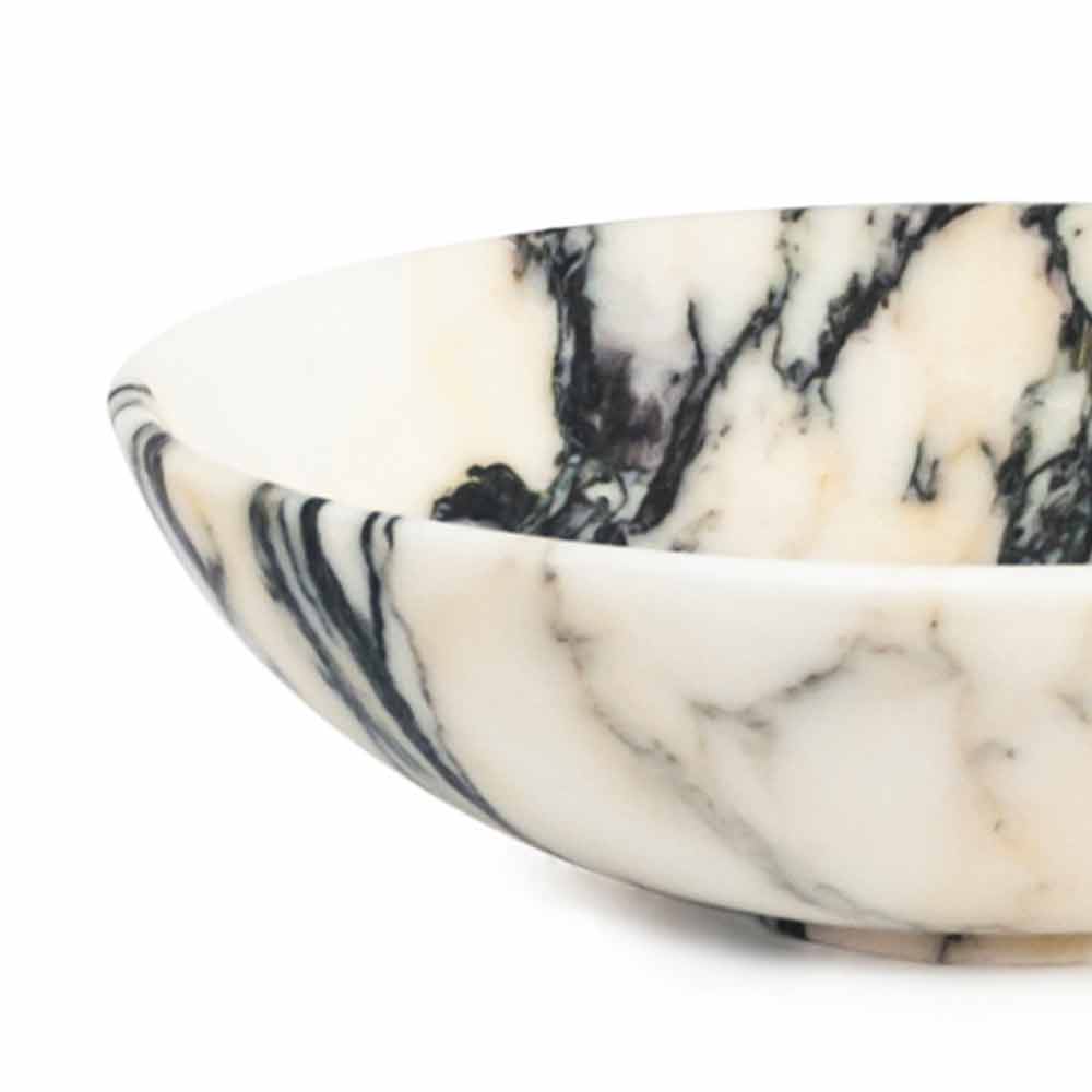 Kulatá mísa na ovoce, která se vyznačuje vzácným mramorem, se kterým ji ručně vyrábějí specializovaní odborníci. Jedná se o jedinečný kus, protože každý použitý blok mramoru se liší od ostatních pro žíly a odstíny.