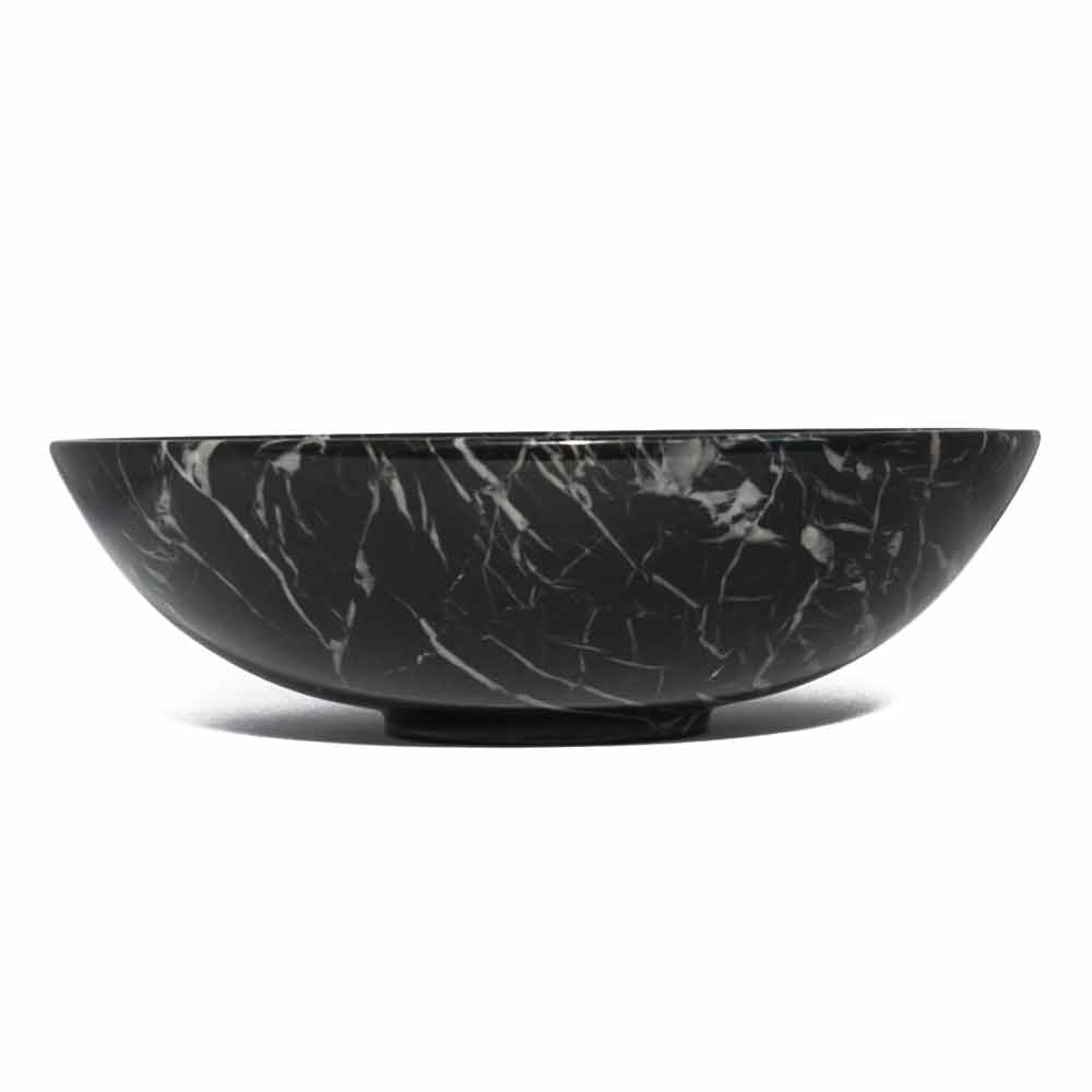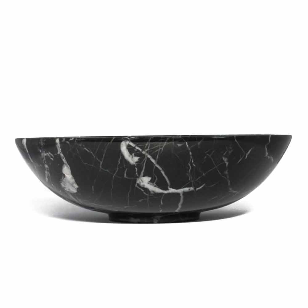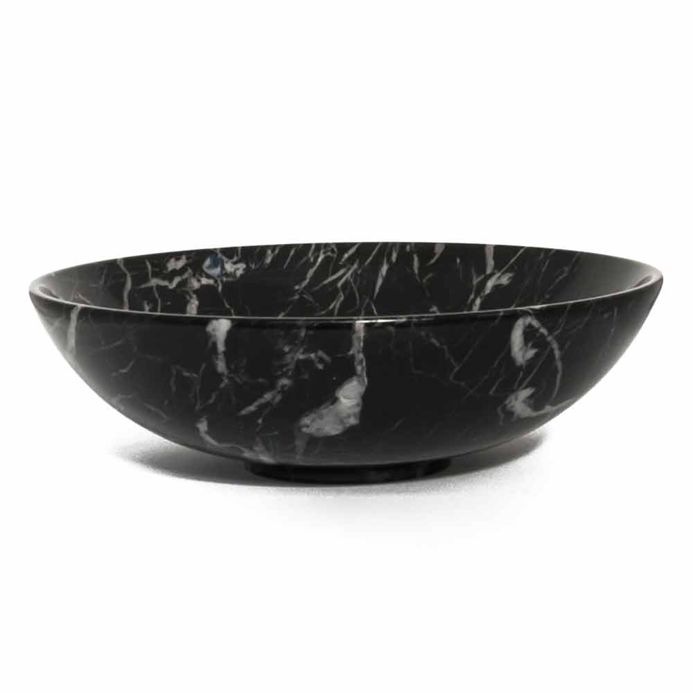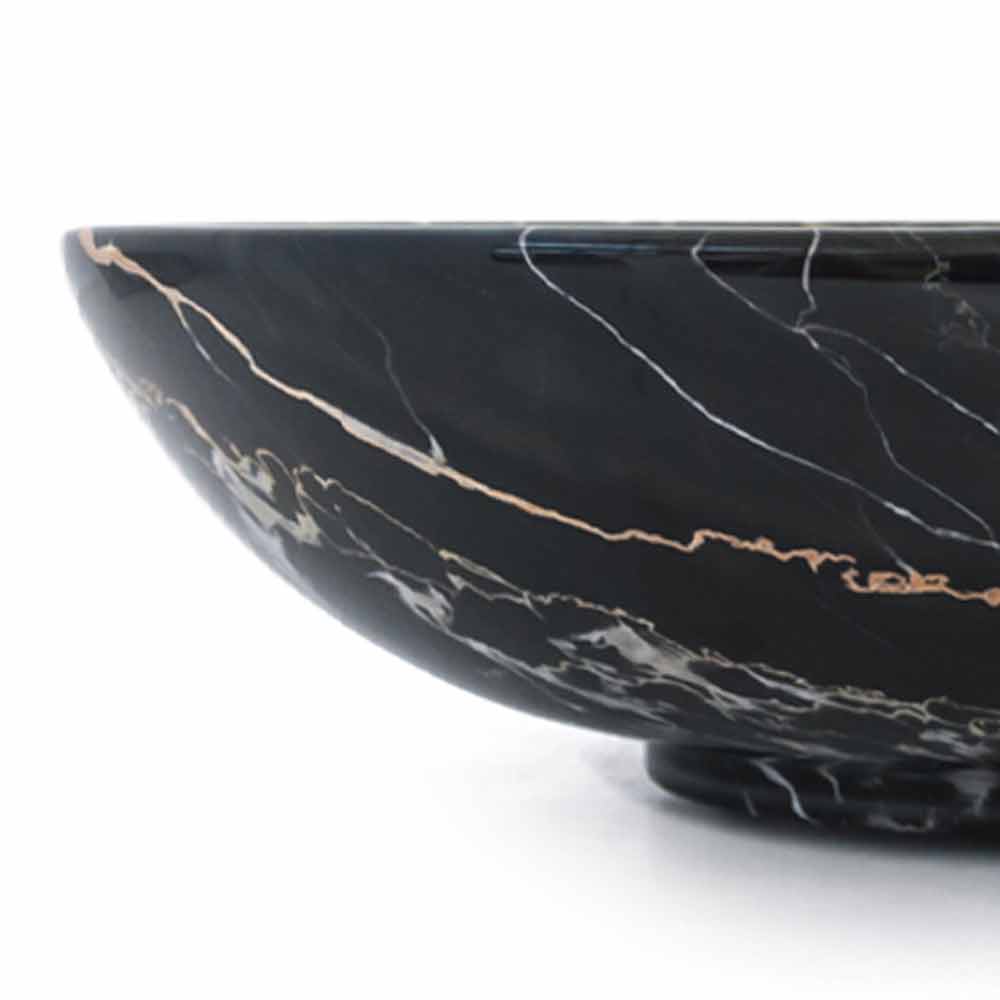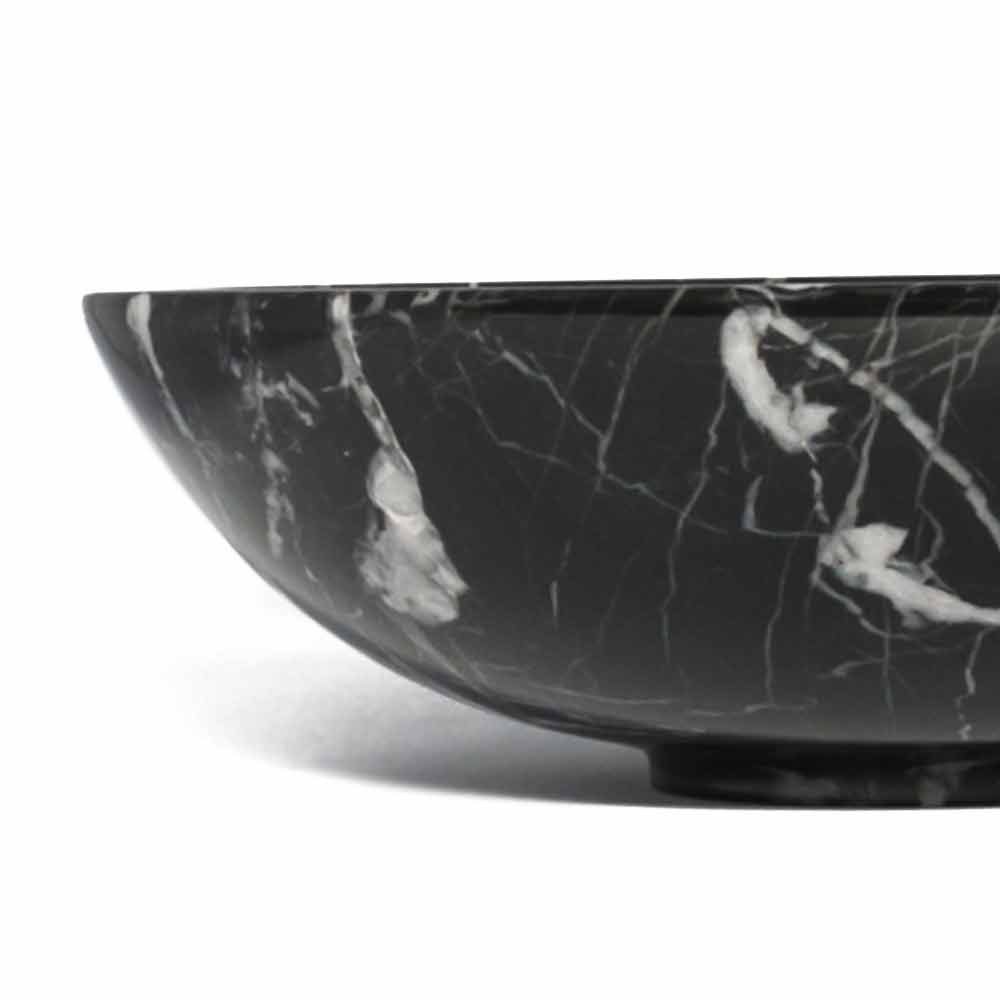 Kulatá designová mísa na ovoce z mramoru Portoro, Paonazzo nebo Marquinia vyrobená v Itálii.