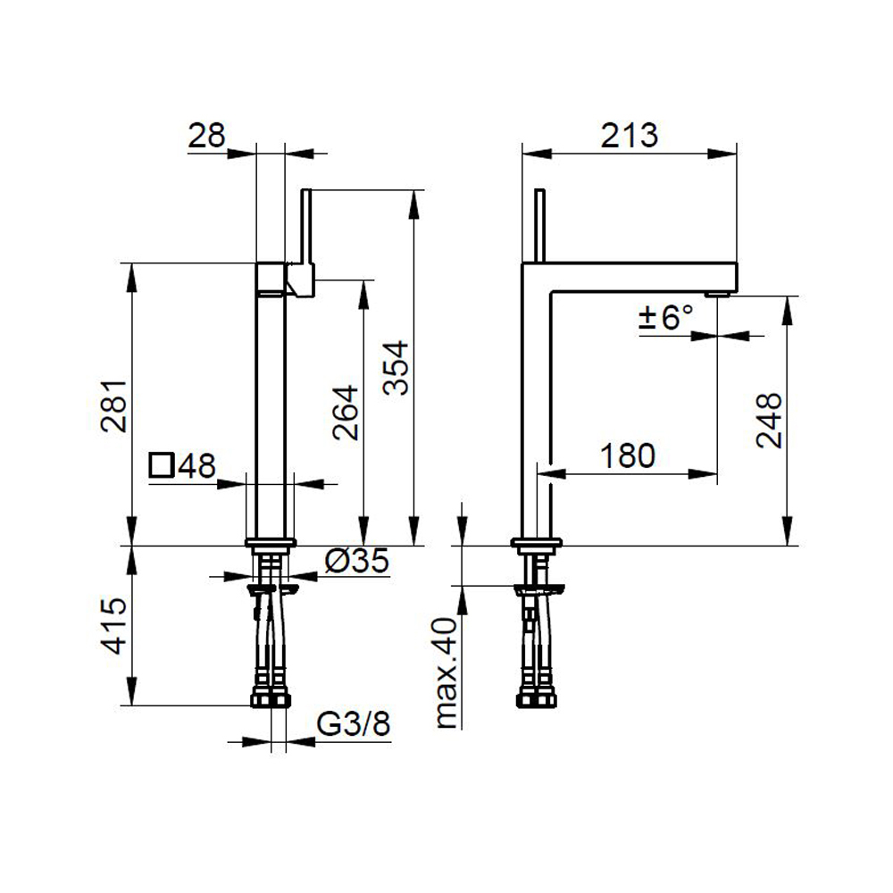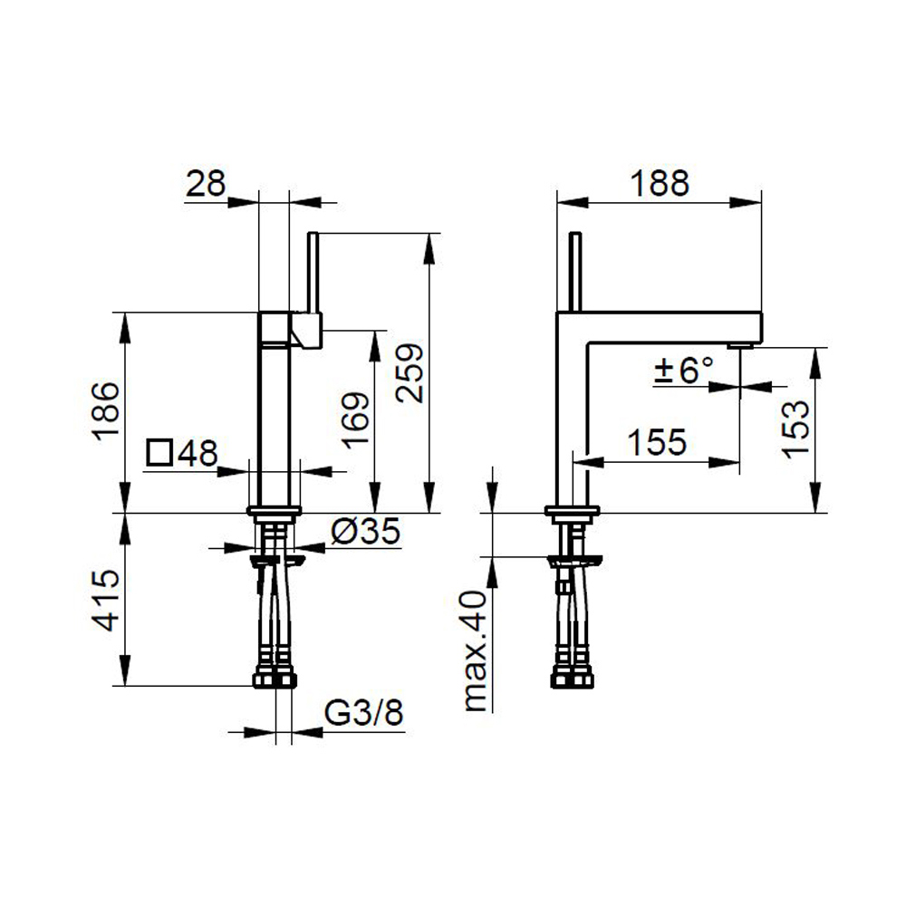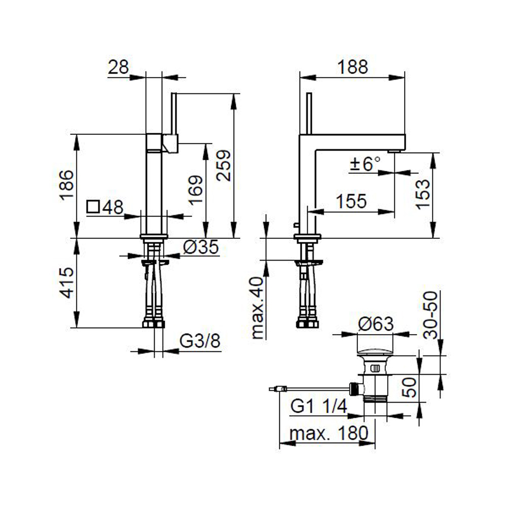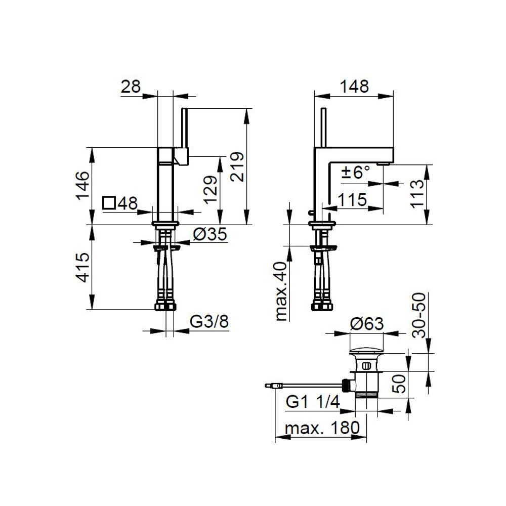 Páková umyvadlová baterie hranatého designu 3 velikosti.