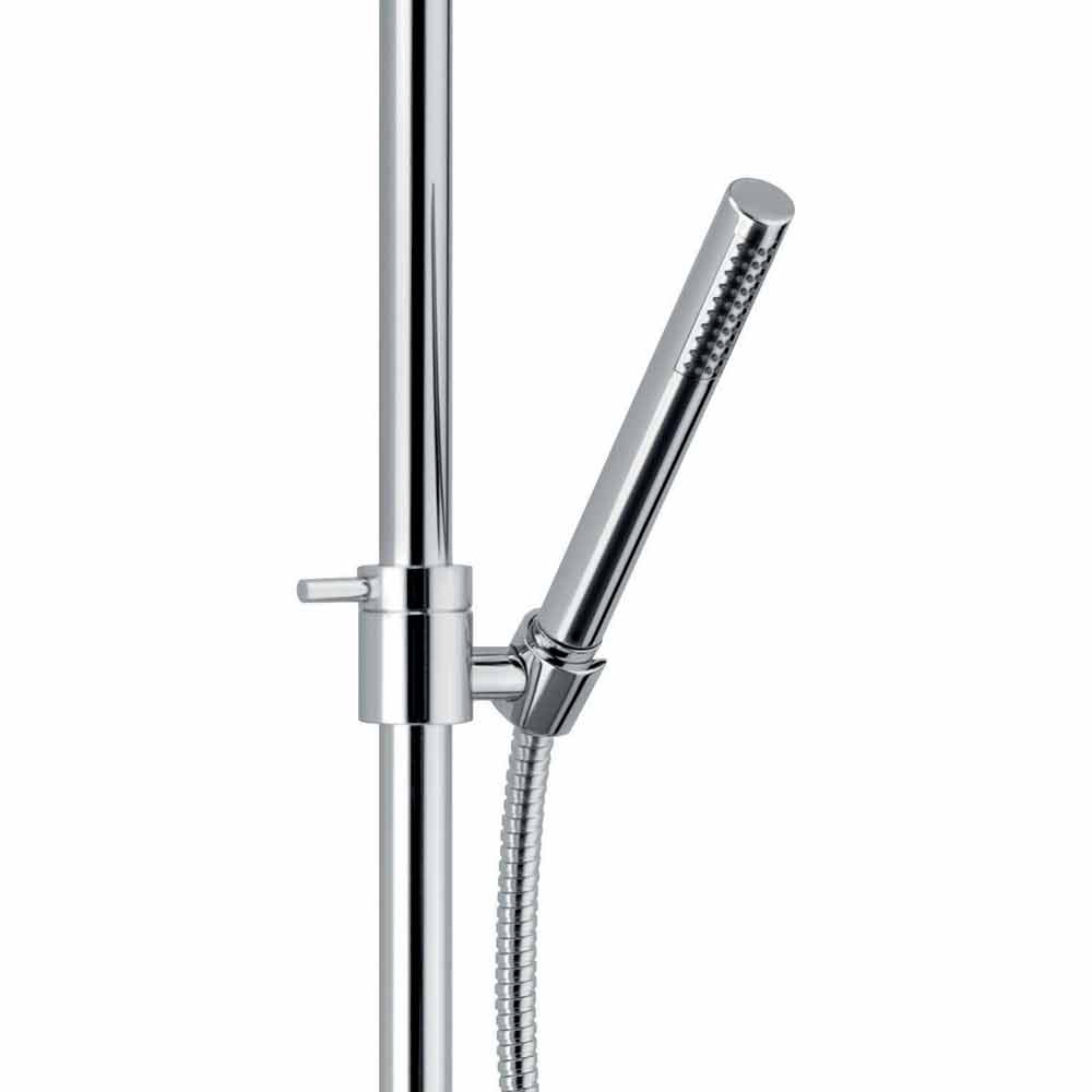 funkčnosti . Posuvná podpora umožňuje přizpůsobit výšku sprchy, která je připojena k praktické 150 cm flexibilní hadici navržené a prostudované pro jednoduché a pohodlné používání. Jeho design se vyznačuje