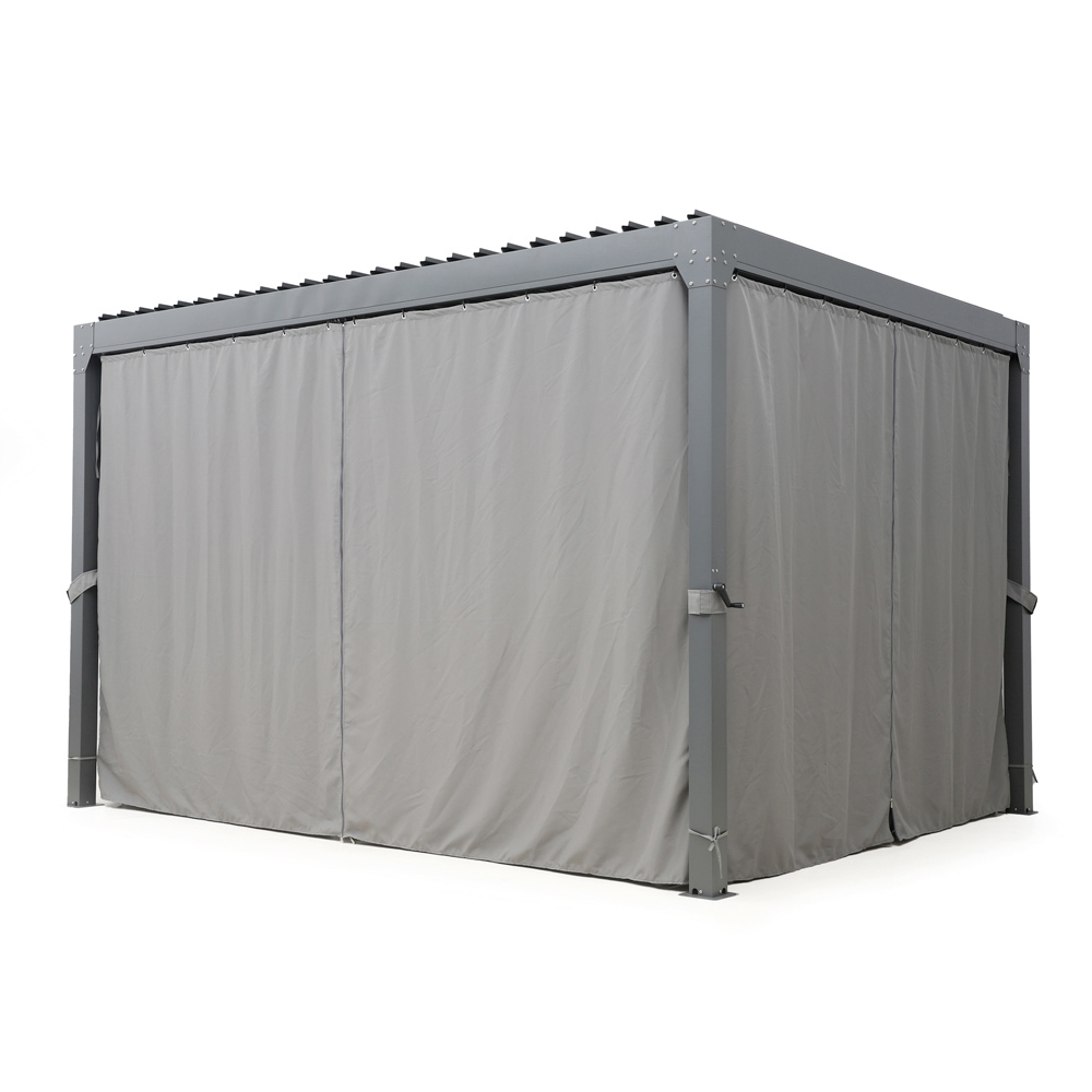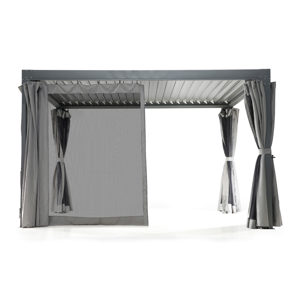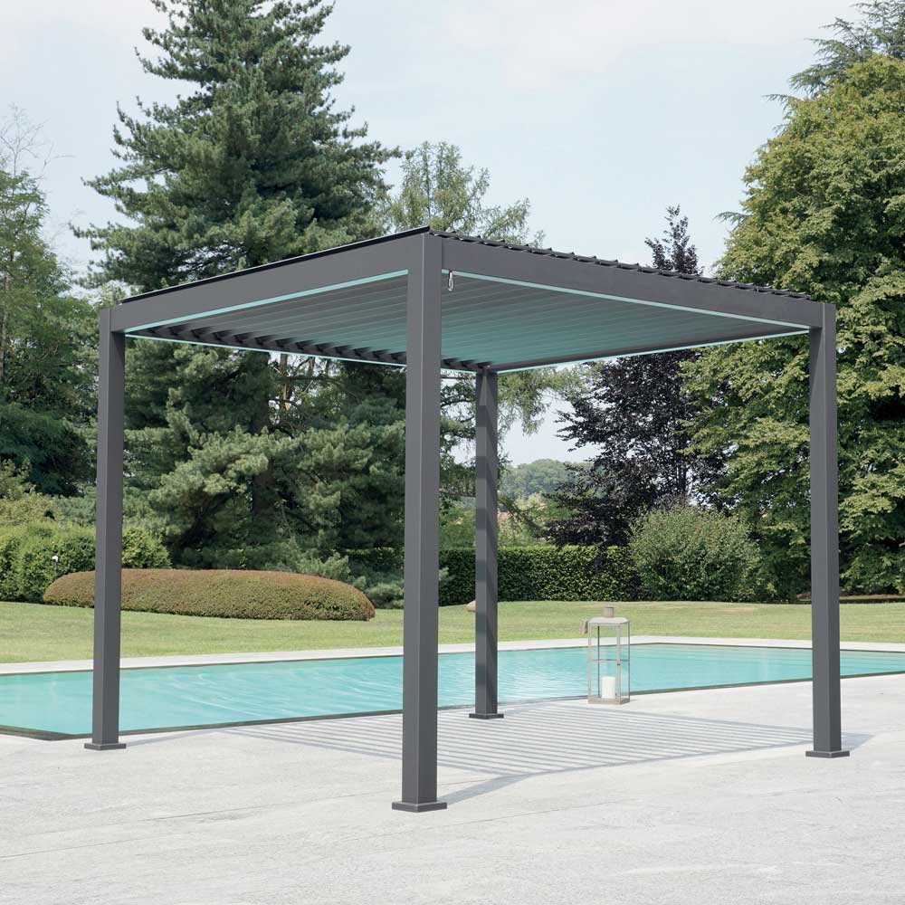 Tato zahradní pergola představuje dokonalou rovnováhu mezi moderním designem a pokročilou funkčností . Jeho lakovaná hliníková konstrukce , pevná a odolná vůči povětrnostním vlivům, dodává nádech minimální elegance , která se dokonale hodí do prestižních venkovních prostředí, jako jsou soukromé zahrady , terasy nebo okraje bazénů .