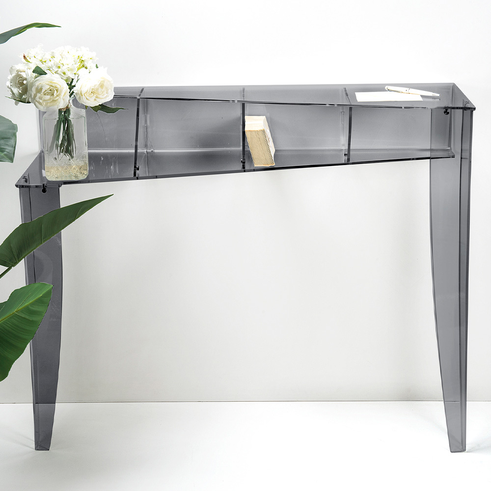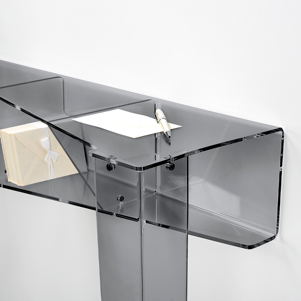 Se svou diskrétní, ale nezapomenutelnou estetikou je konzole dostatečně univerzální, aby si vás všimla, aniž by přehlušila ostatní prvky zařízení. Jeho hladký, průhledný povrch je ideální pro vystavování umění, fotorámečků nebo jednoduše pro uspořádání klíčů a každodenní pošty.