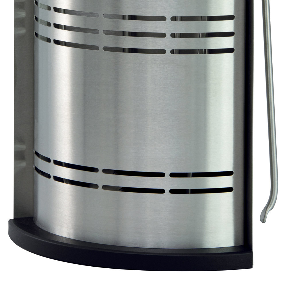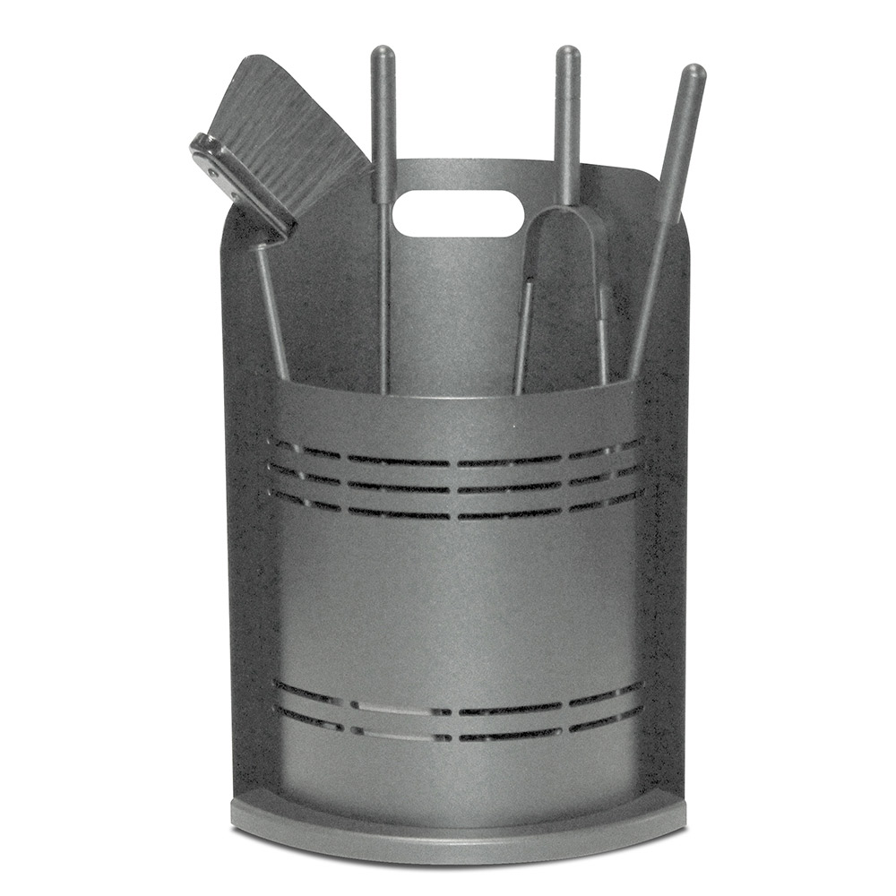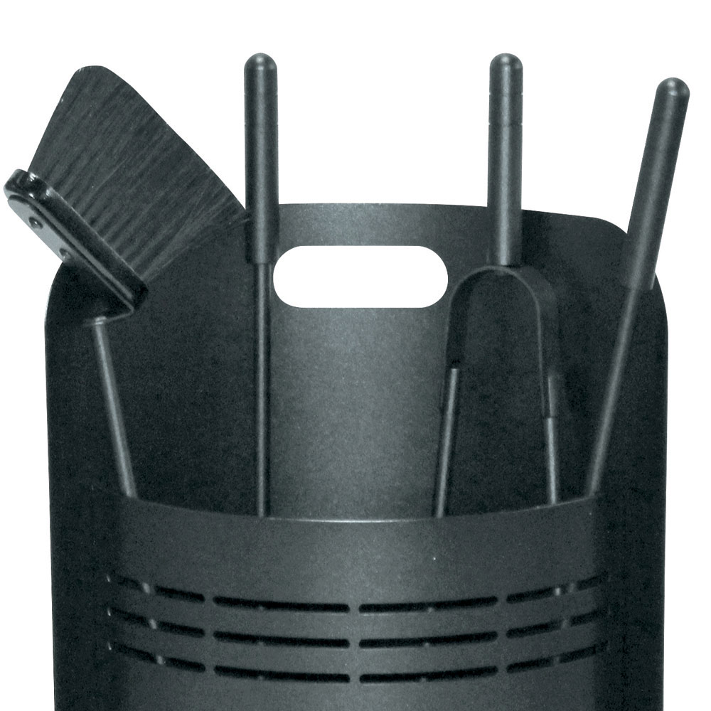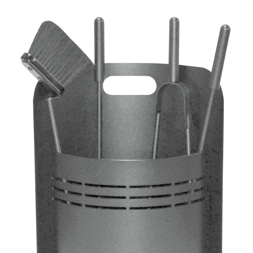 Tento držák krbového nářadí je ideální pro ty, kteří hledají dotek současného designu . Jeho válcový tvar je elegantní a šetří místo, zatímco horizontální štěrbiny nejen vytvářejí poutavý vizuální detail, ale také zajišťují dostatečné větrání pro vybavení.