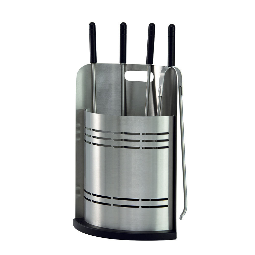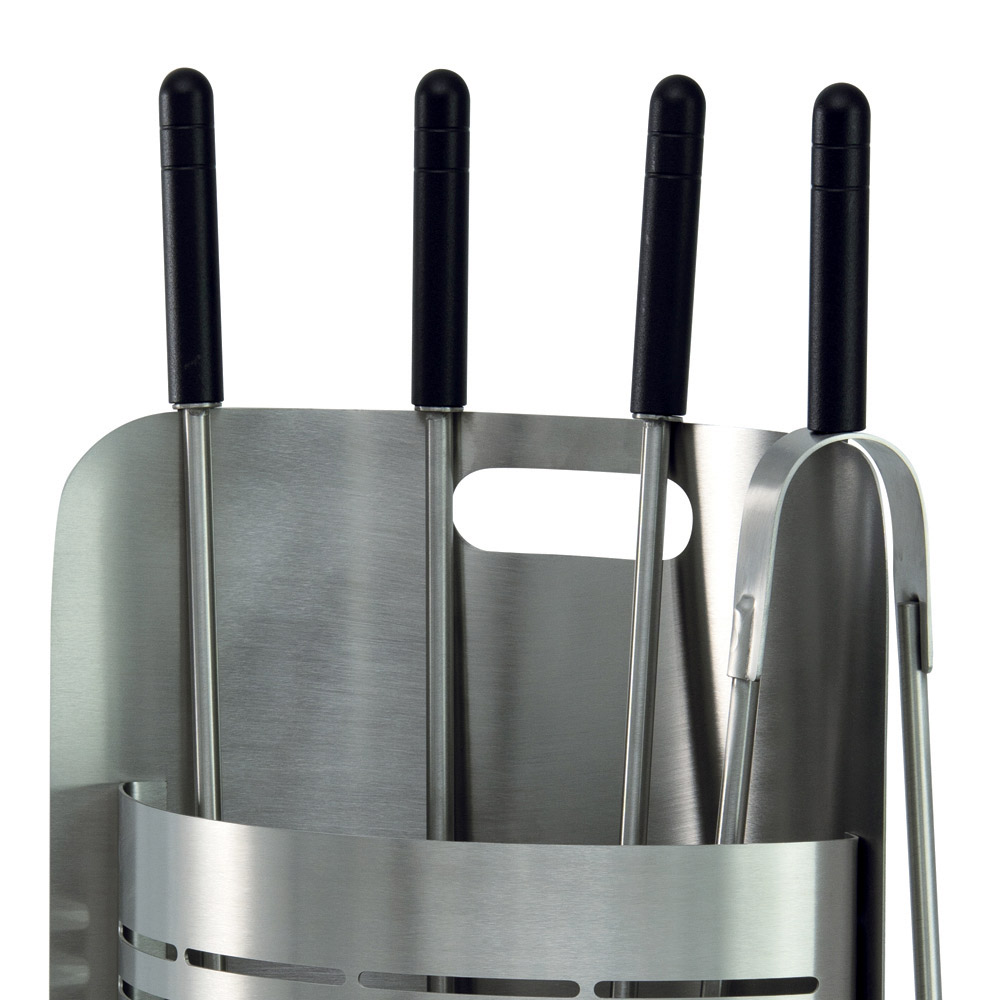 Sada obsahuje 4 příslušenství , vše nezbytné pro udržování ohně a čištění krbu. Přítomnost rukojeti na horní straně vám umožňuje snadno zvednout celý držák nástroje a přesunout jej tam, kde je to žádoucí. Jeho design je funkční, ale nezanedbává estetiku, s čistými liniemi a pevnou strukturou, která z něj dělá odolný a stylový prvek v domácnosti.