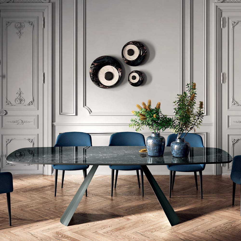 vynikající kvality Made in Italy . Díky tvaru podstavce a dostupným povrchovým úpravám je tento stůl