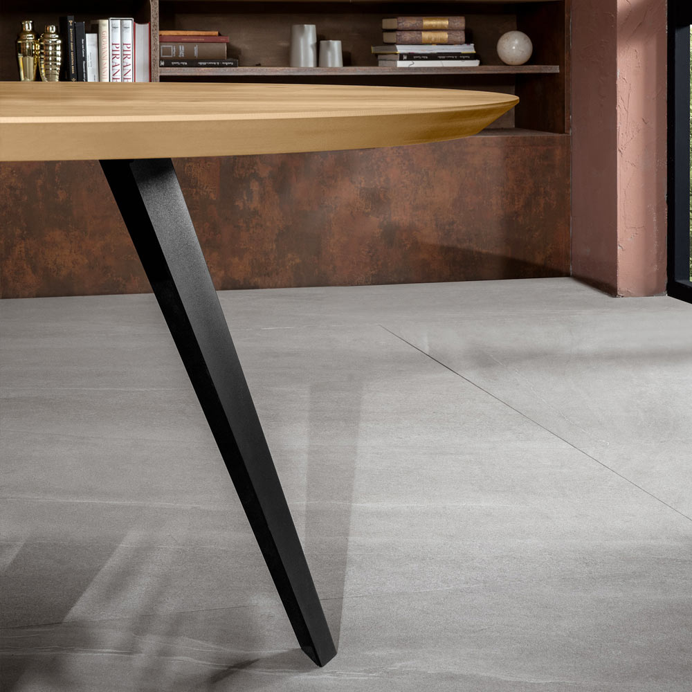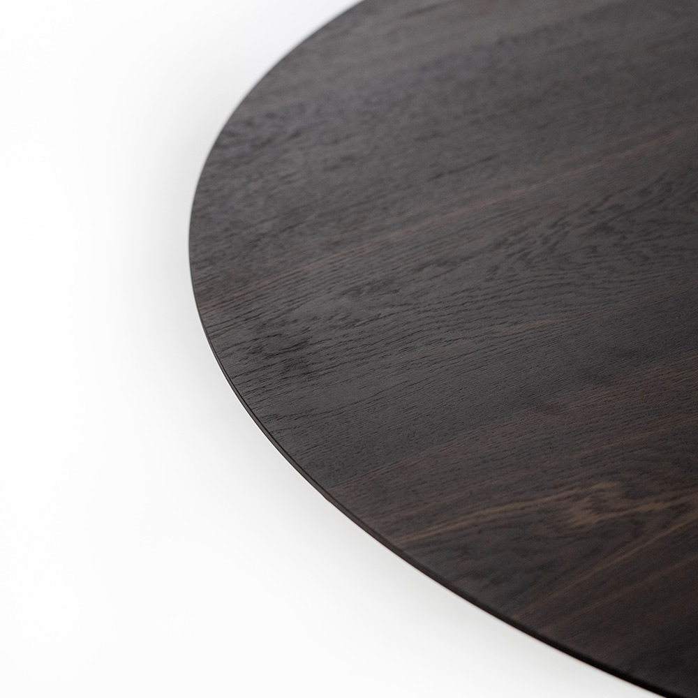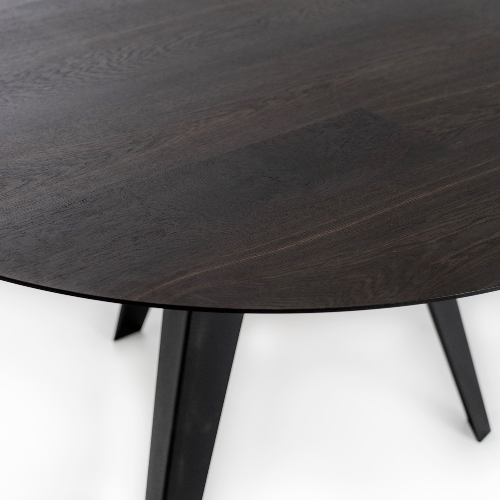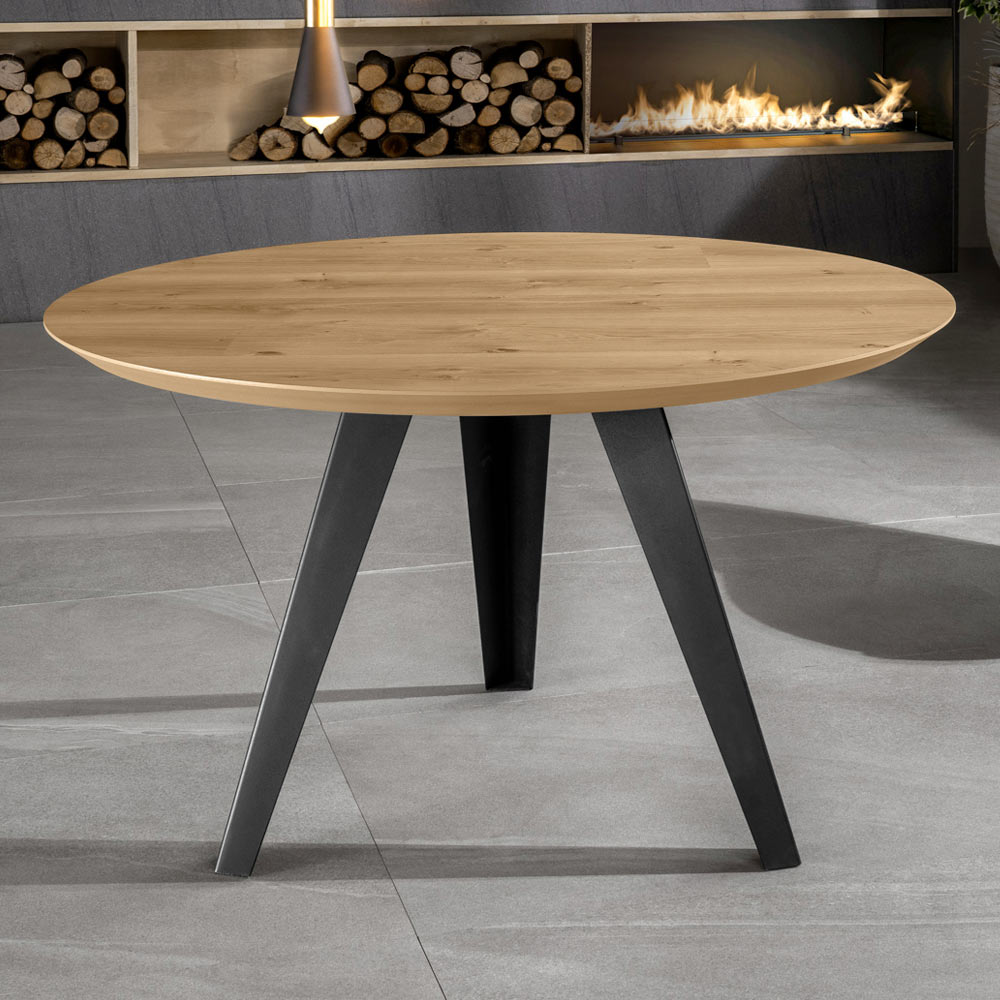 Kulatý jídelní stůl z dubové dýhy a kovu