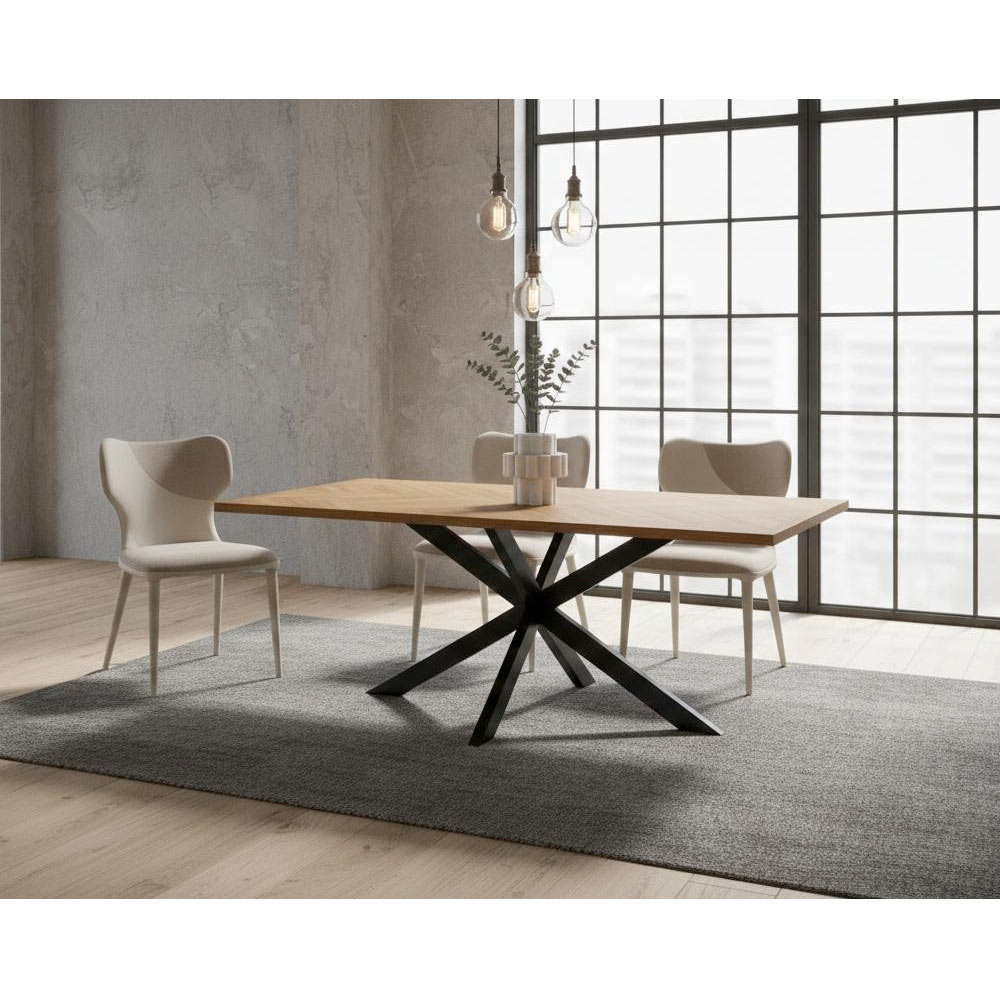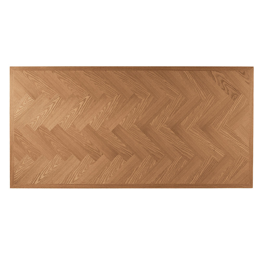 Tento stůl představuje dokonalou kombinaci přirozeného tepla a moderního designu . Dubová deska vylepšuje prostor svou přirozenou texturou a vytříbenou estetikou, takže každý kus je jedinečný a dokáže dodat charakter jídelně nebo obývacímu pokoji.