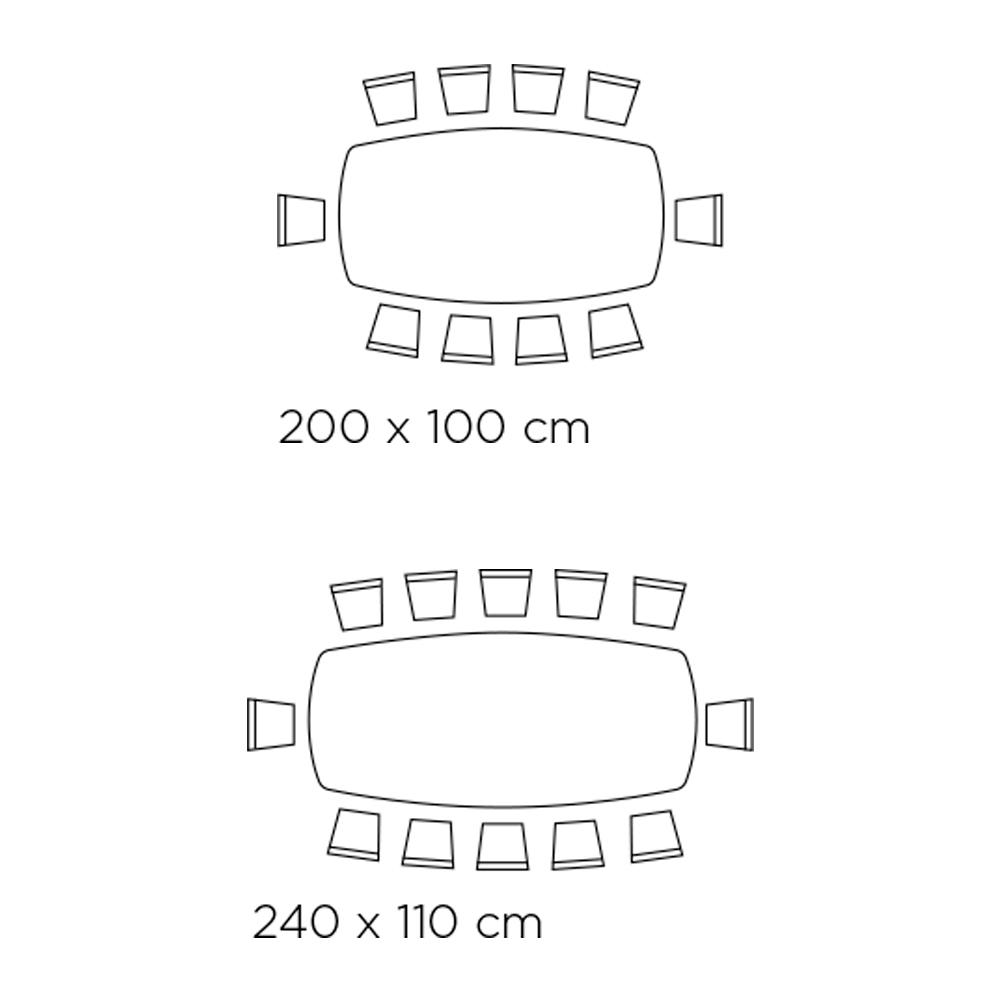Díky tvaru podstavce a dostupným povrchovým úpravám je stůl schopen dodat