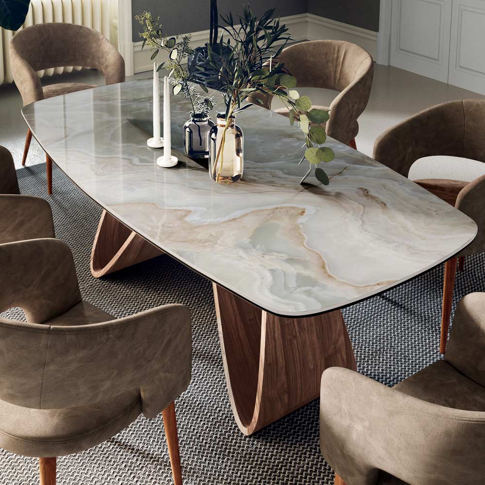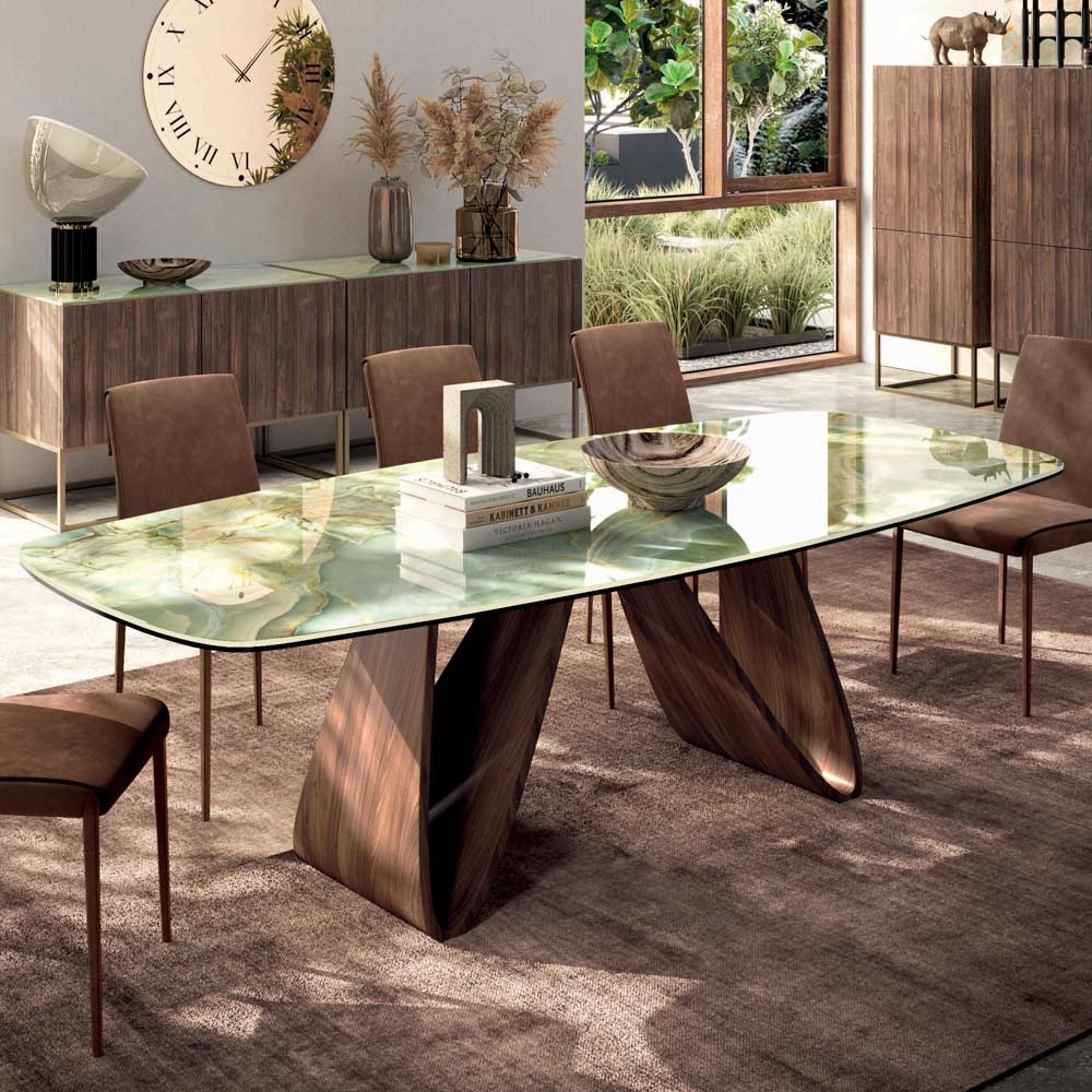 Pevný stůl ze dřeva a keramiky Made in Italy
