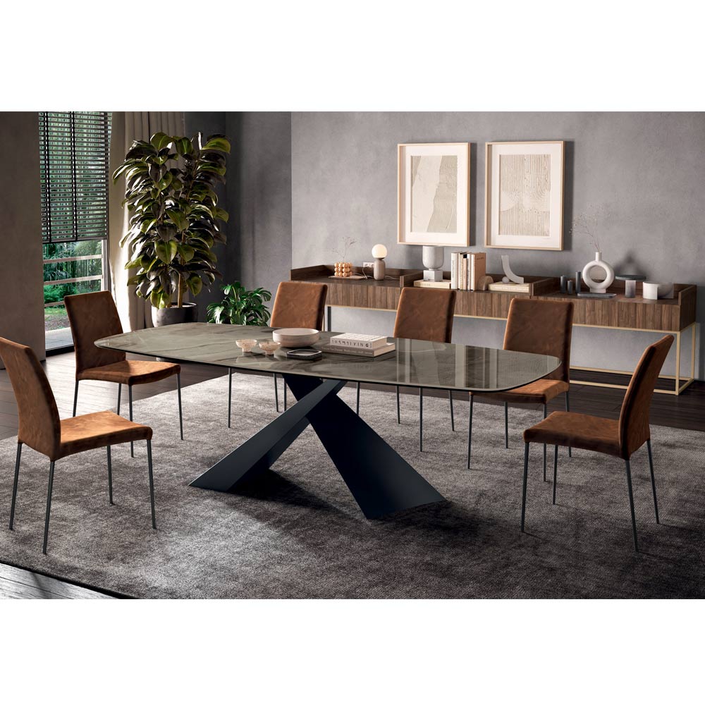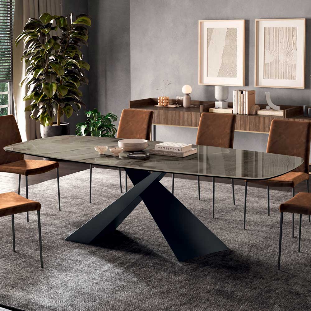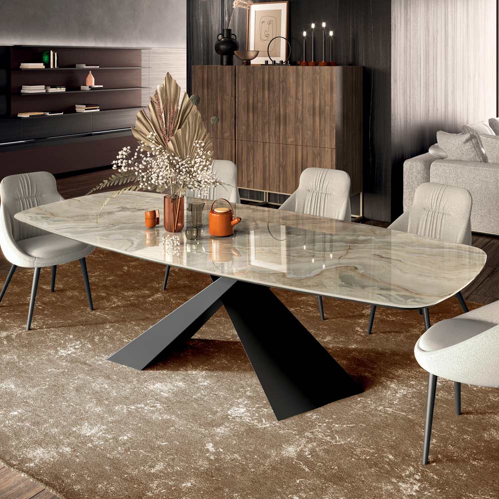 Pevný stůl z oceli a keramiky Made in Italy