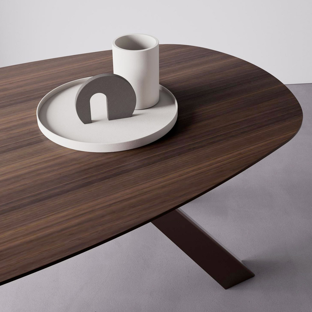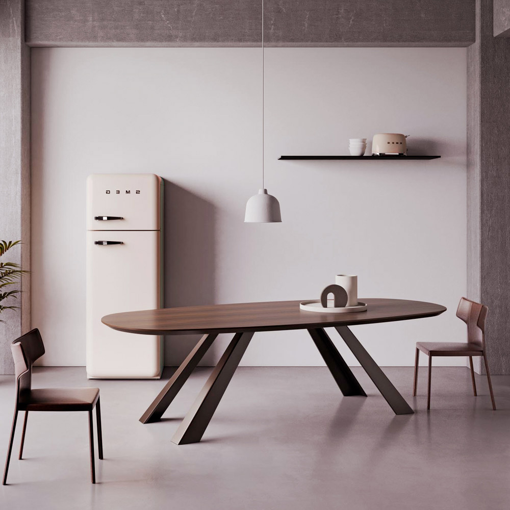 Pevný stůl s eliptickou deskou a zkosenou hranou Made in Italy.