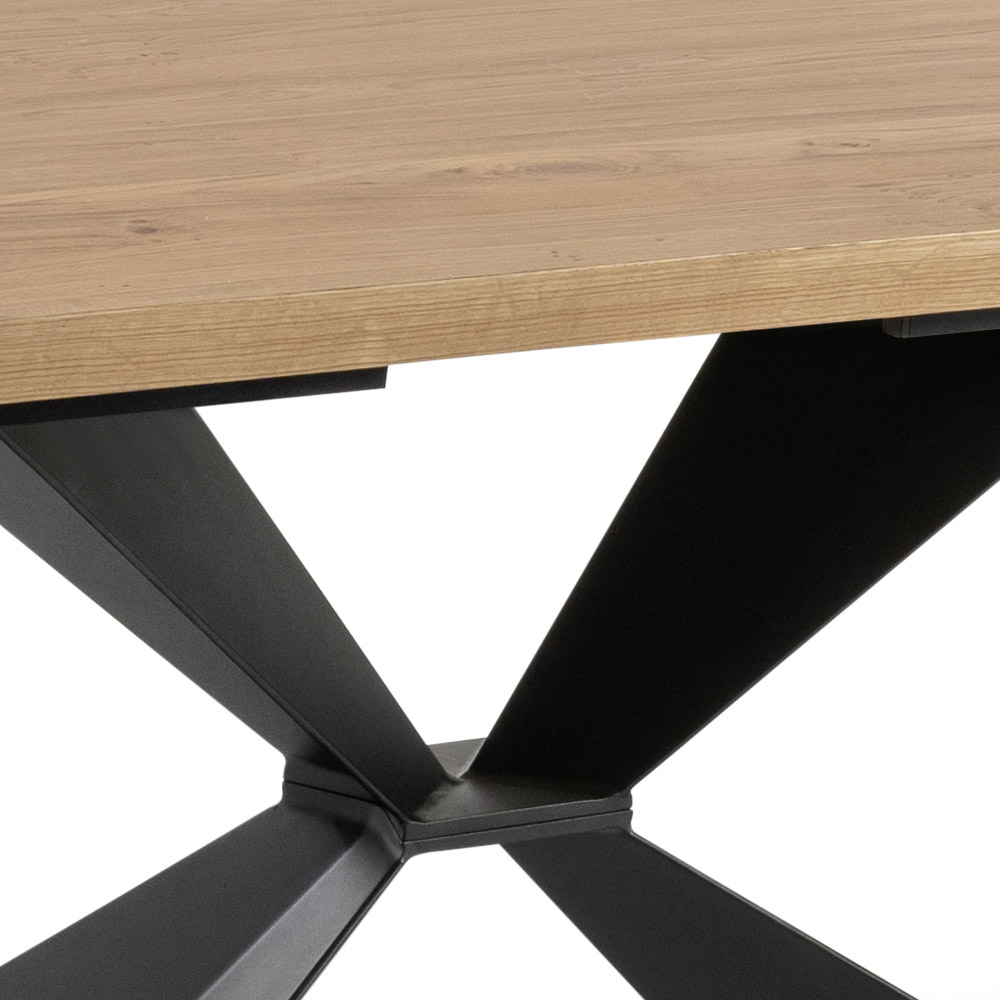 Pevný obývací stůl s deskou z dubové dýhy , lakované kovové nohy.