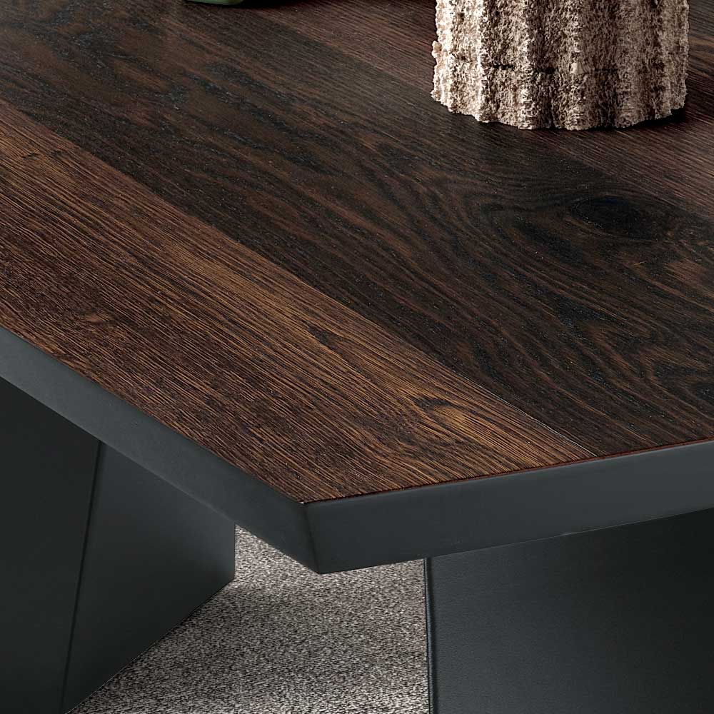 Kombinace kovu a dřeva vytváří elegantní a moderní kontrast, díky čemuž je stůl vhodný pro různé styly zařízení. Vrchní deska je k dispozici v povrchové úpravě surového dubu a tepelně upraveného dubu , která je navržena tak, aby zdůraznila přirozenou krásu dřeva a snadno se začlenila do moderního prostředí.