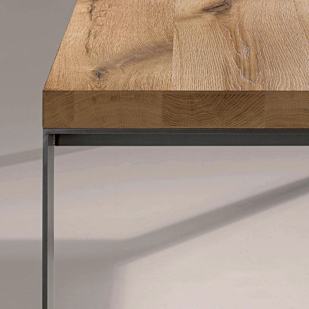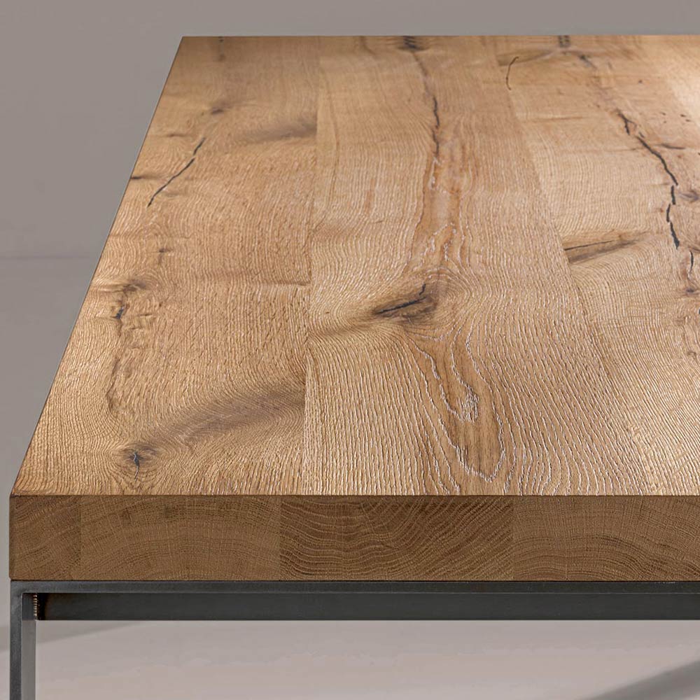 Pevný stůl s kovovými nohami a deskou z přírodního dubu Made in Italy.