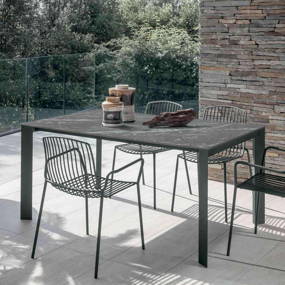 Tenký, ale pevný kovový rám zajišťuje stabilitu a odolnost, takže je ideální pro každodenní použití. Tento stůl je ideální pro každou příležitost, od rodinných večeří až po setkání s přáteli, a nabízí dostatečné rozměry, aby pohodlně ubytoval všechny vaše hosty.
