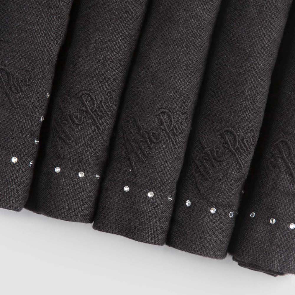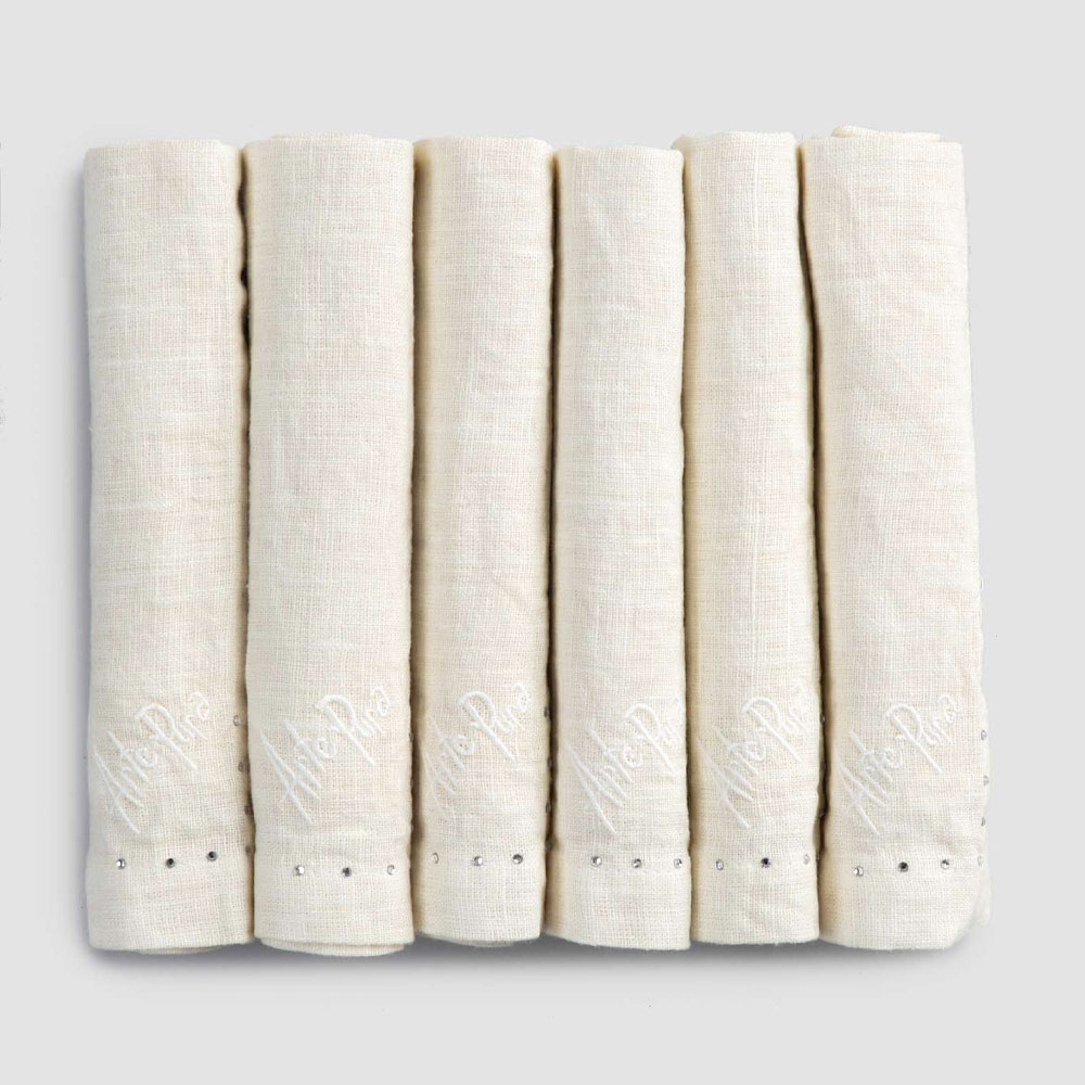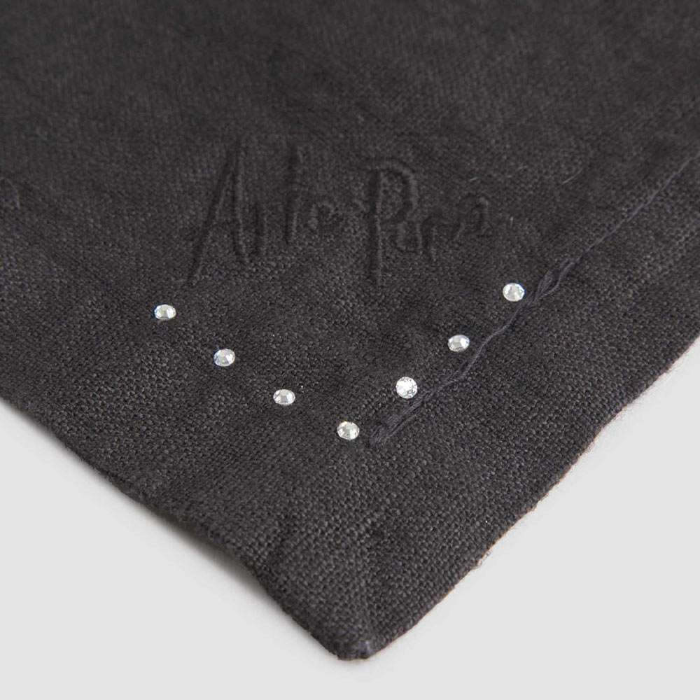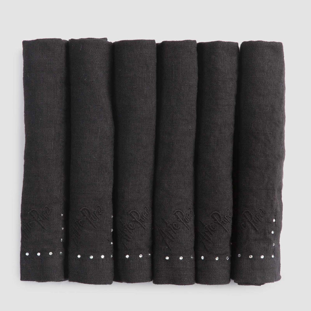 Sada ubrousků v černém plátně nebo másle s krystaly, 6 luxusních kusů vyrobené v Itálii.