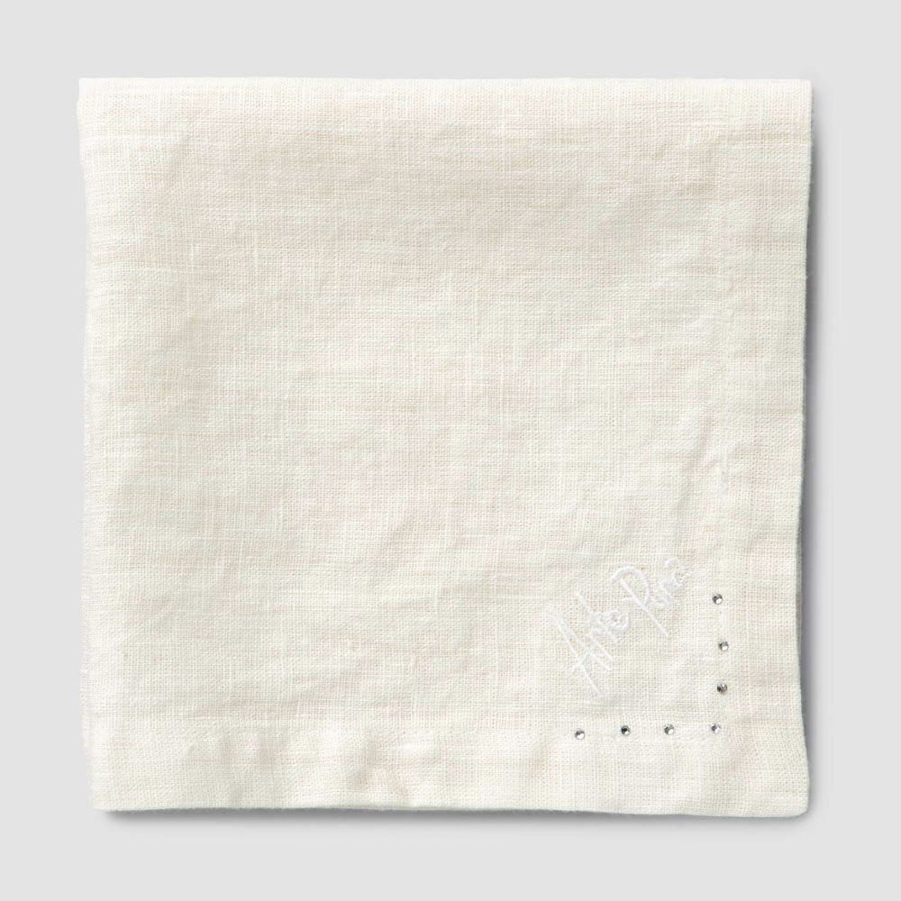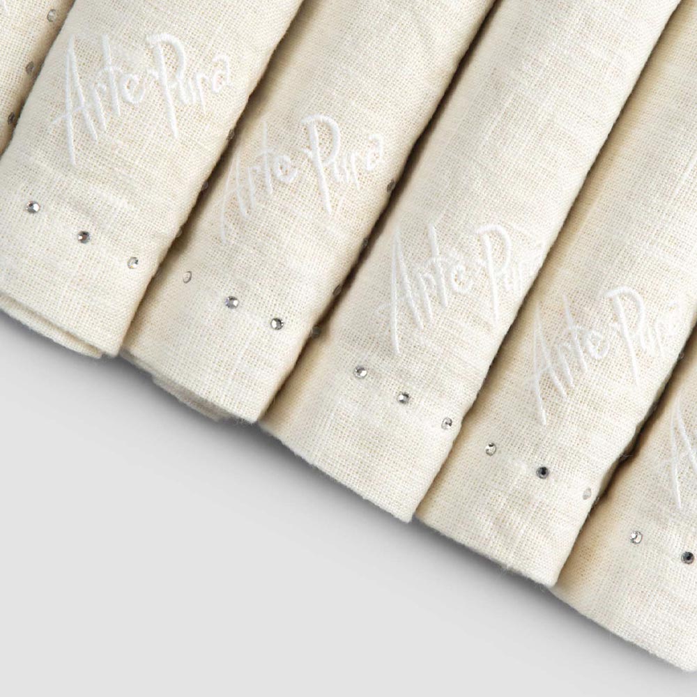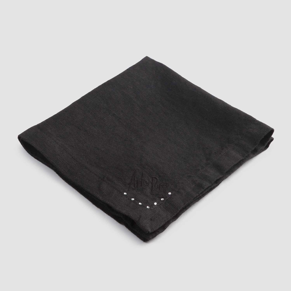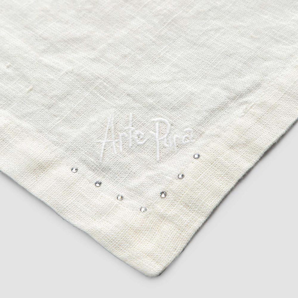 Sada ubrousků v černém plátně nebo másle s krystaly, 6 luxusních kusů vyrobené v Itálii.