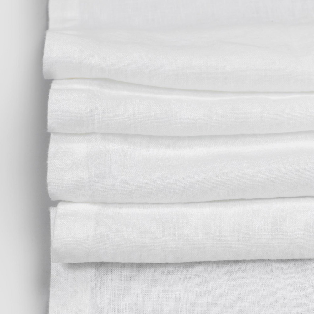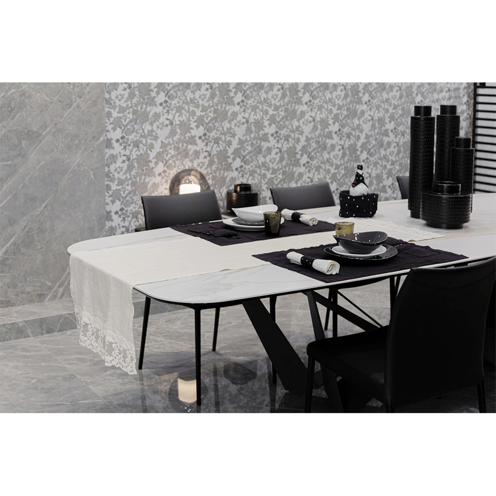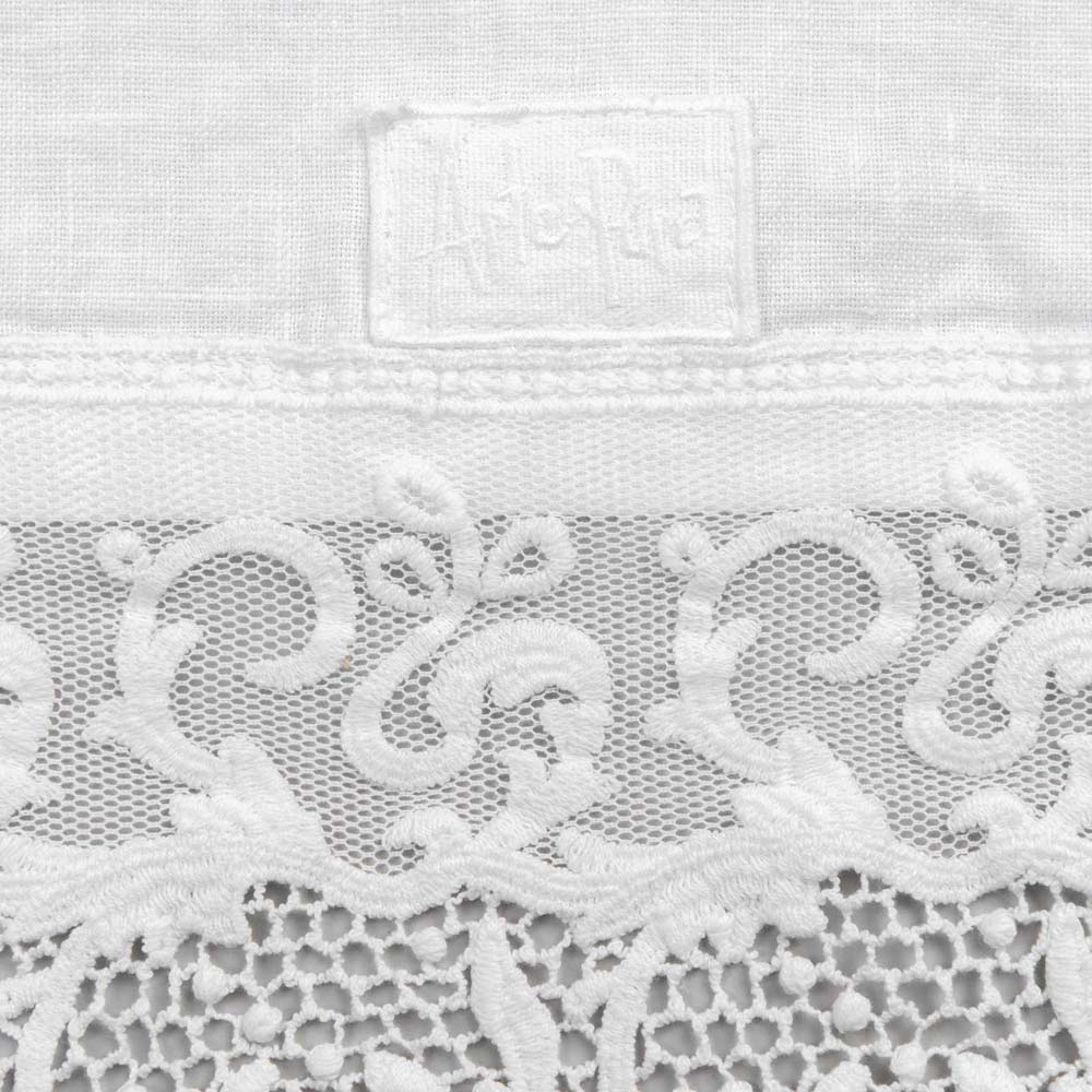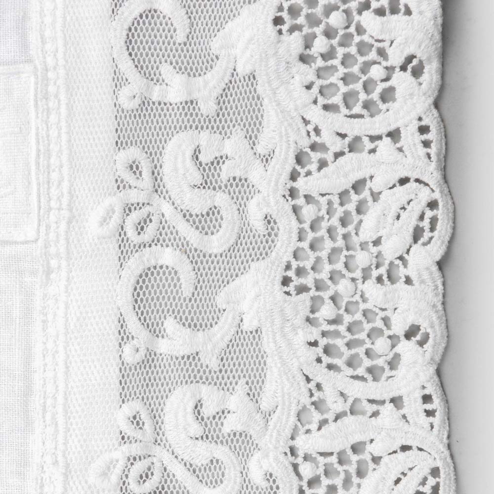 Čistě bílý plátěný běhoun se dvěma variantami krajkové dekorace, elegantní a luxusní design vyrobený v Itálii.