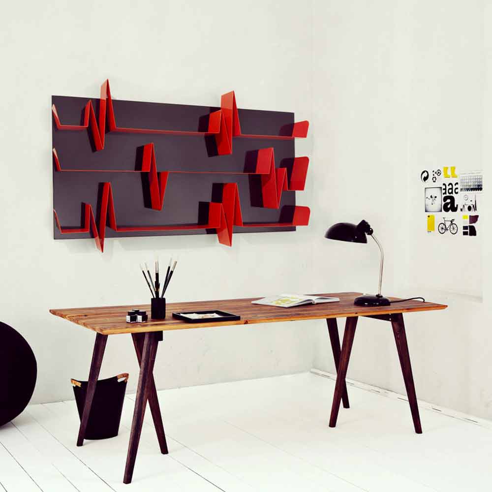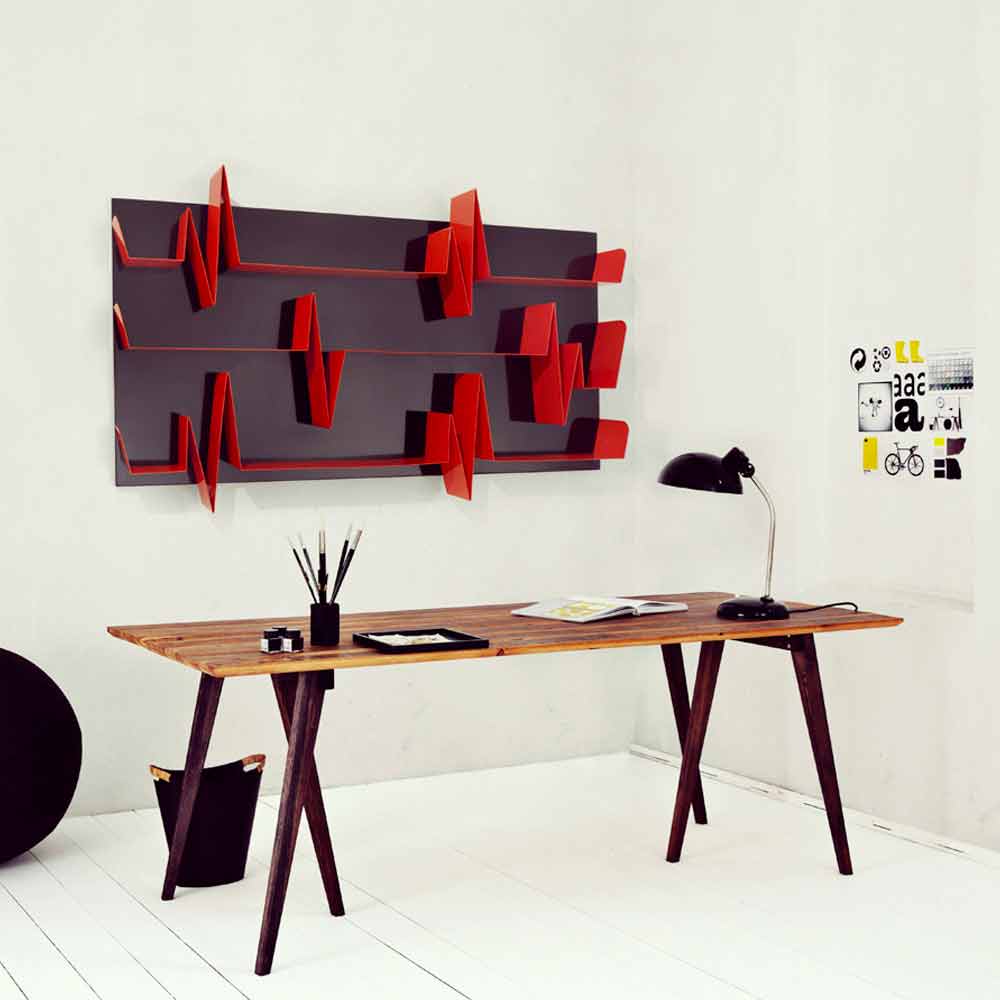 Srdce bije a jeho skladba stávají police této původní knihovny z lakovaného železa stěny, které jsou ideální pro ukládání knih nebo dražších položek.