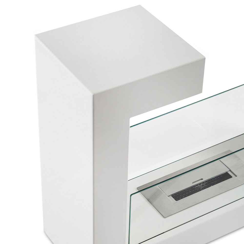 Podlahový krb na bioetanol s konstrukcí z bílého lakovaného kovu a průhledným tvrzeným sklem užitečný pro ochranu plamene před poryvy větru a jeho zvýraznění. Kompletní s nástrojem pro kontrolu plamene a návodem k použití. Ideální zařizovací prvek pro funkční a elegantní vytápění domácích i smluvních prostor uvnitř i venku. Jeho rafinovaný a exkluzivní design to dělá oceníte také ve vypnutém stavu, protože dotváří okolní prostor prostřednictvím a dotek rafinovaného a elegantního stylu .