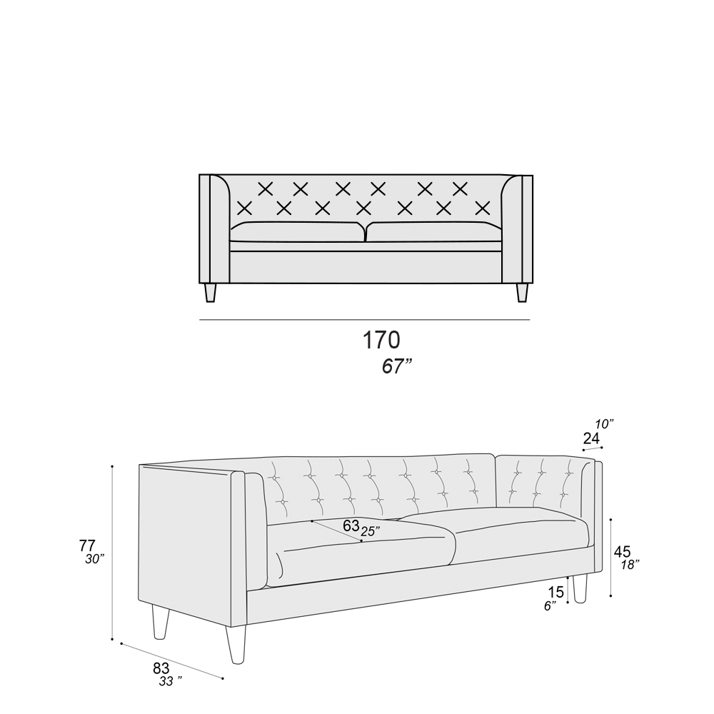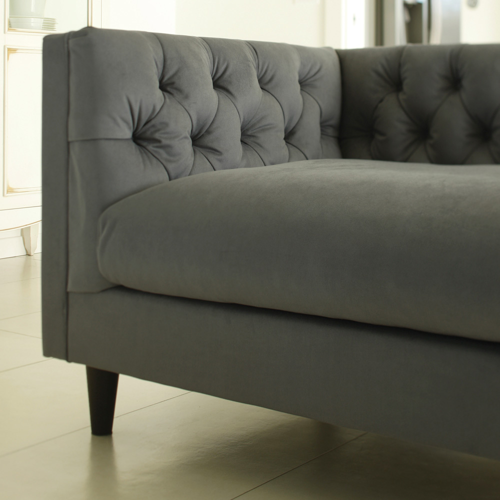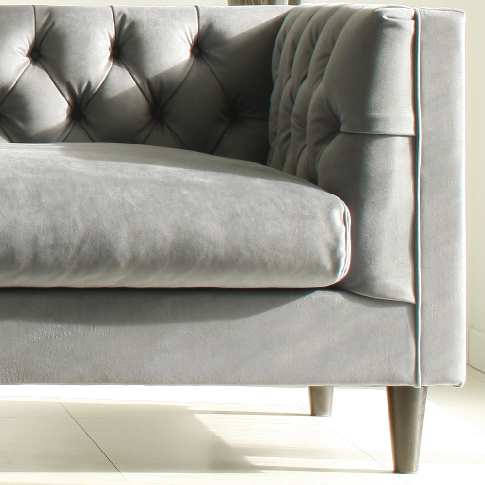 bukového dřeva. Pohovka kombinuje klasicismus s moderním a rafinovaným vzhledem. Jeho knoflíkové tupírování a zaoblené područky evokují eleganci, zatímco dřevěný rám a velkorysé polstrování zajistí pohodlí. Kvalitní čalounění dostupné v různých barvách obohacuje vzhled pohovky. Tenké dřevěné nohy dodávají moderní nádech, díky čemuž je pohovka vhodná do tradičních i moderních interiérů a dodávají jí útulnou a sofistikovanou atmosféru.