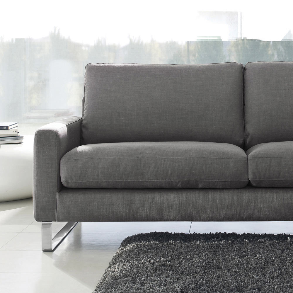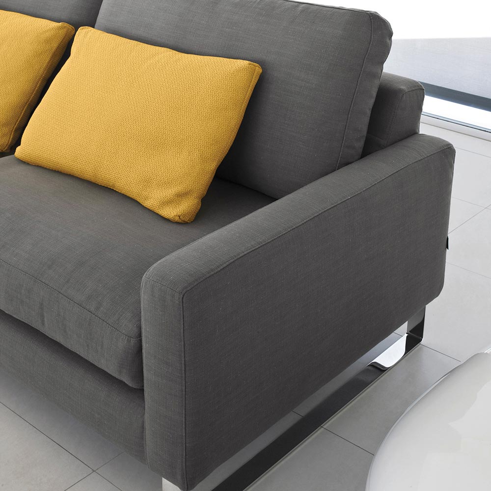 z chromovaných kovových saní. Pohovka ztělesňuje esenci minimalismu přeměněnou na funkčnost. Díky svému jedinečnému designu nabízí pohodlí a eleganci a slibuje, že bude vždy držet krok s dobou, pokud jde o estetiku a pohodlí. Široká škála čalounění a barev z něj dělá všestranný kus nábytku do každého prostředí.